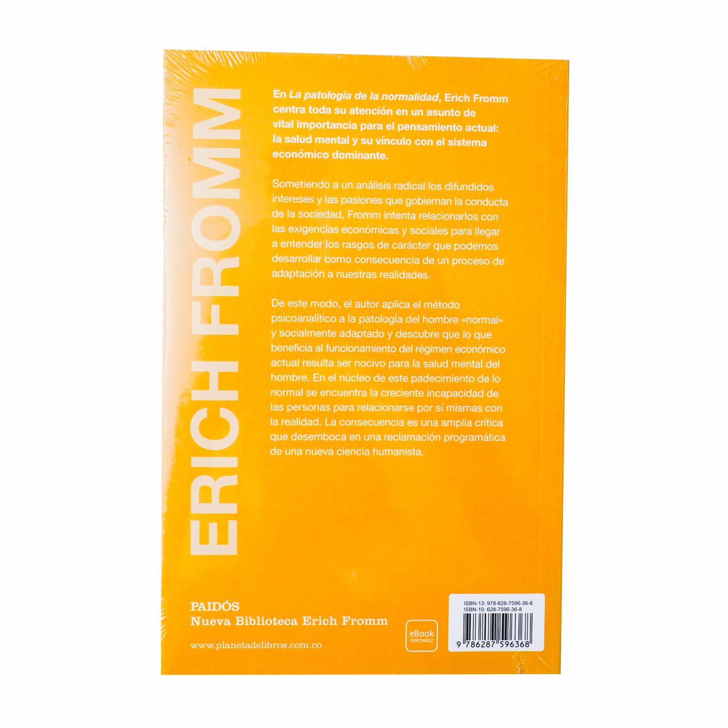 - Erich Fromm, uno de los pensadores más influyentes del siglo xx, reflexiona en La patología de la normalidad sobre un tema especialmente vigente hoy en día: la salud mental y su vínculo con el sistema económico dominante. En La patología de la normalidad Erich Fromm centra toda su atención a un asunto de vital importancia en el pensamiento actual: la salud mental y su vínculo con el sistema económico dominante
