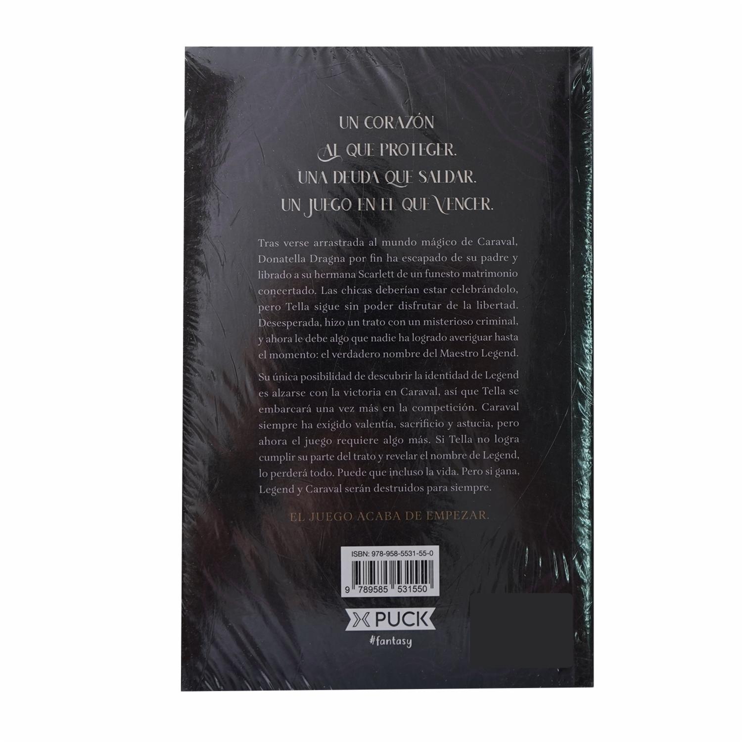 - Un corazón al que proteger. Una deuda que saldar. Un juego en el que vencer. Tras verse arrastrada al mundo mágico de Caraval, Donatella Dragna por fin ha escapado de su padre y librado a su hermana Scarlett de un funesto matrimonio concertado. Las chicas deberían estar celebrándolo, pero Tella sigue sin poder disfrutar de la libertad