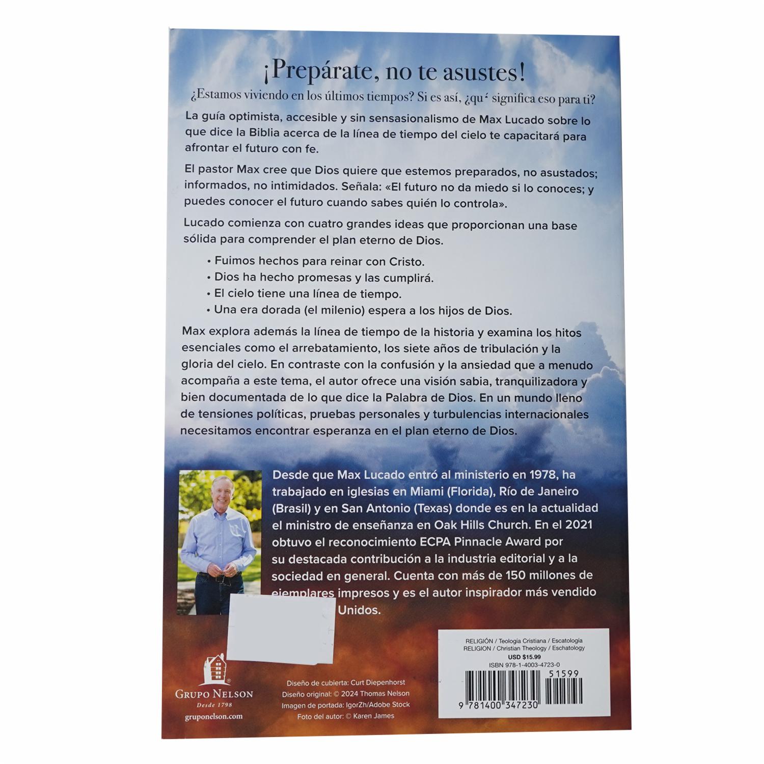 - ¿Estamos viviendo el final de los tiempos? Si es así, ¿qué significa eso para mí? La guía optimista, accesible y no sensacionalista de Max Lucado sobre lo que dice la Biblia acerca de la línea temporal del cielo capacitará a los lectores para afrontar el futuro con fe