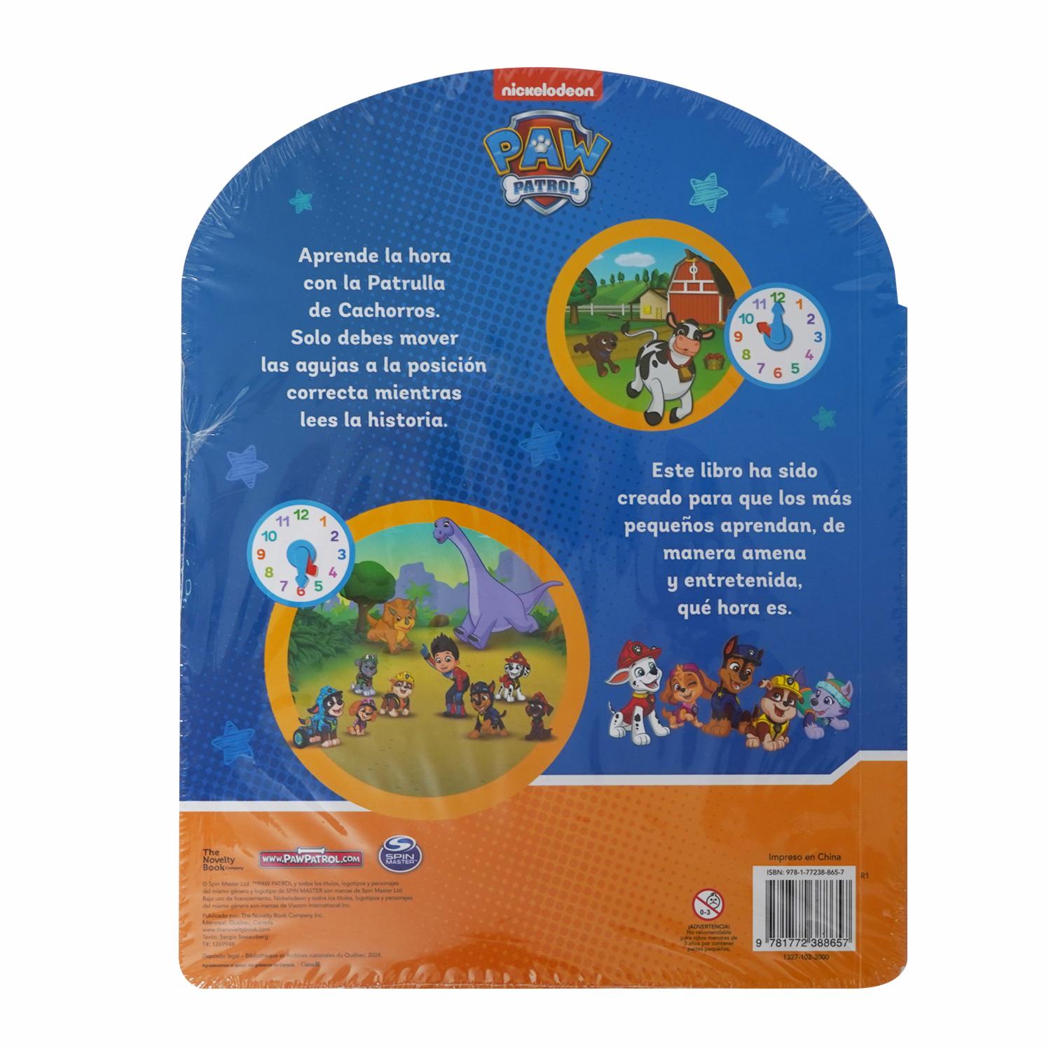 Aprende la hora con la Patrulla de Cachorros. Solo debes mover las agujas a la posición correcta mientras lees la historia. Este libro ha sido creado para que los más pequeños aprendan, de manera amena y entretenida, qué hora es