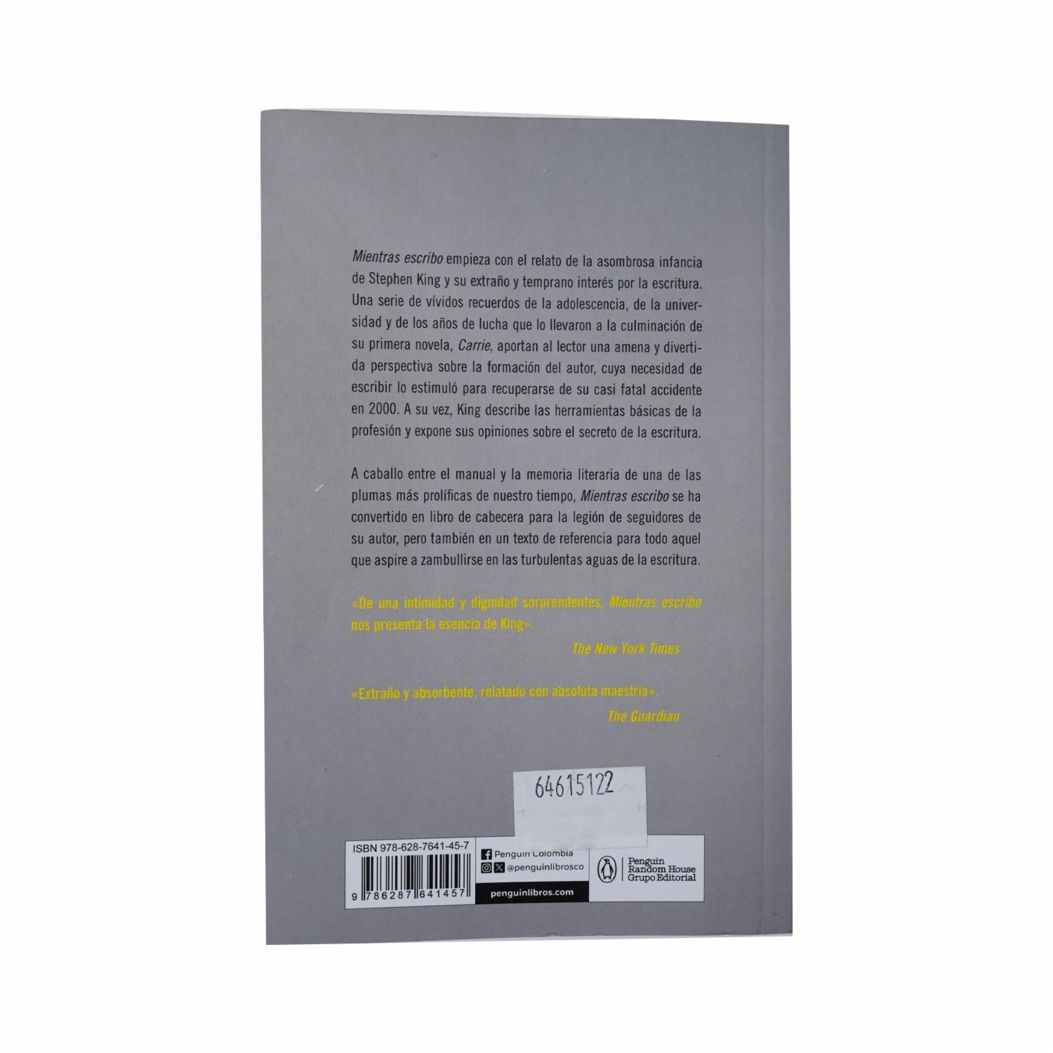 - Si no tiene tiempo para leer, no tendrá el tiempo ni las herramientas necesarias para escribir.» Mientras escribo empieza con el relato de la asombrosa infancia de Stephen King y su extraño y temprano interés por la escritura. Una serie de vívidos recuerdos de la adolescencia, de la universidad y de los años de lucha que lo llevaron a la culminación de su primera novela, Carrie, aportan al lector una amena y divertida perspectiva sobre la formación del escritor