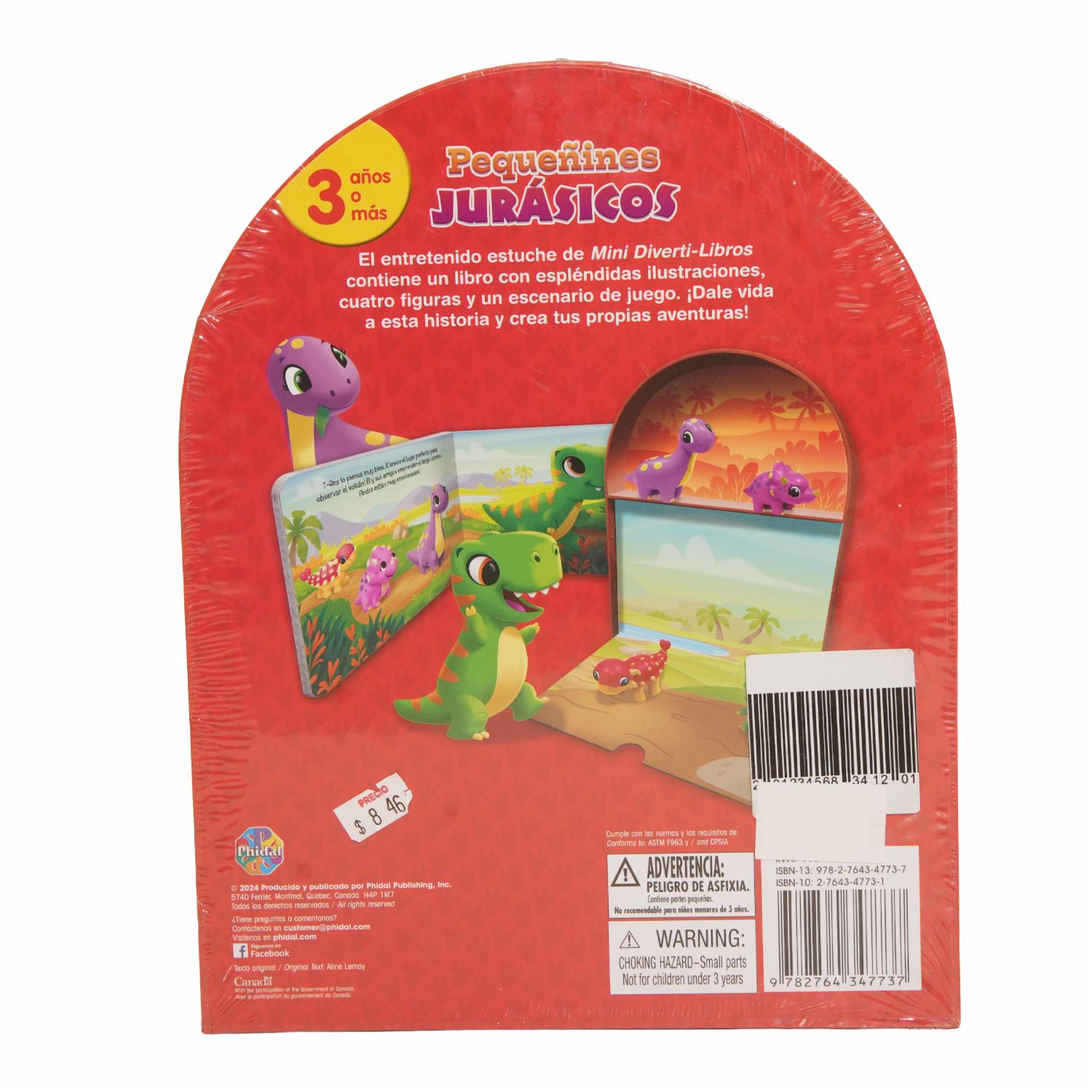 El libro Mini Diverti-Libros: Pequeñines Jurásicos de la editorial PHIDAL es una propuesta educativa y divertida para niños a partir de 2 años. Este set incluye un libro ilustrado a todo color, cuatro figuras de plástico y un tablero de juego desplegable, permitiendo a los pequeños sumergirse en historias prehistóricas mientras desarrollan habilidades motrices y de imaginación