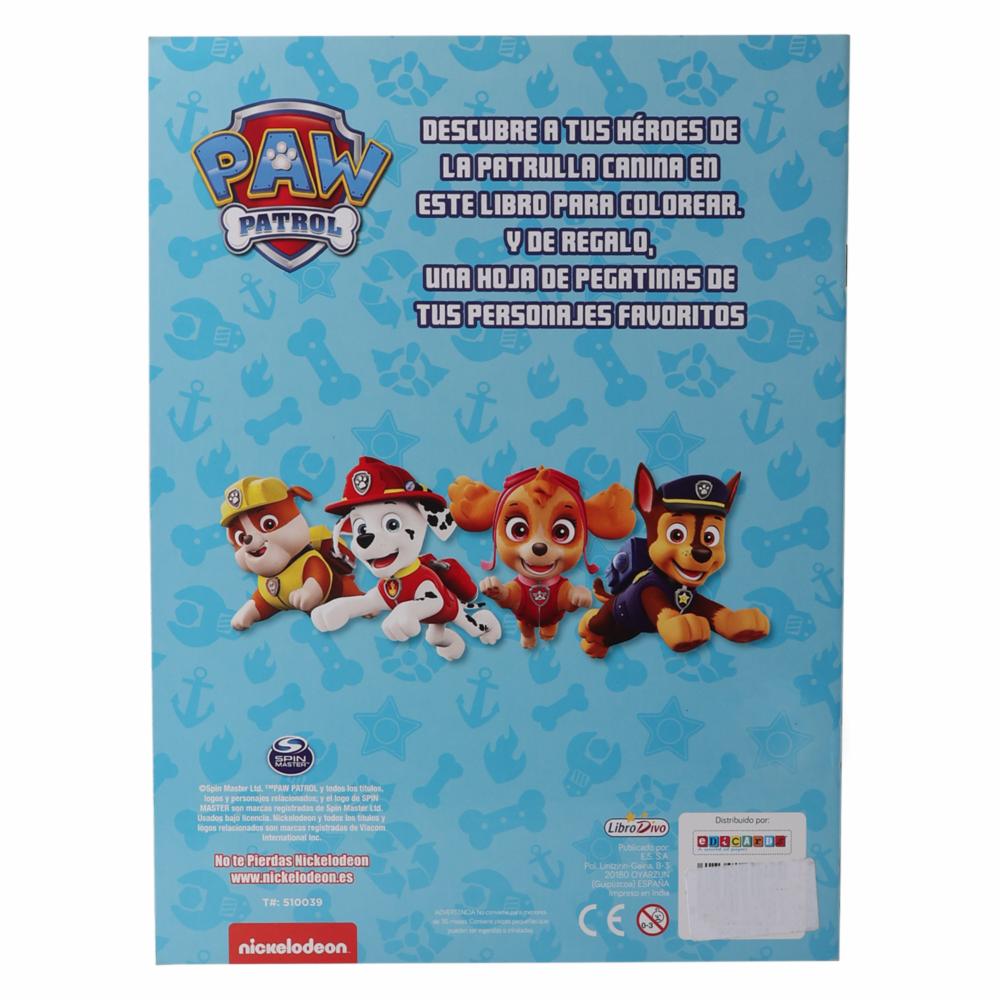 Libro Paw Patrol Color Con Pegatinas Pasta Azul LIBRO DIVO 15 Páginas