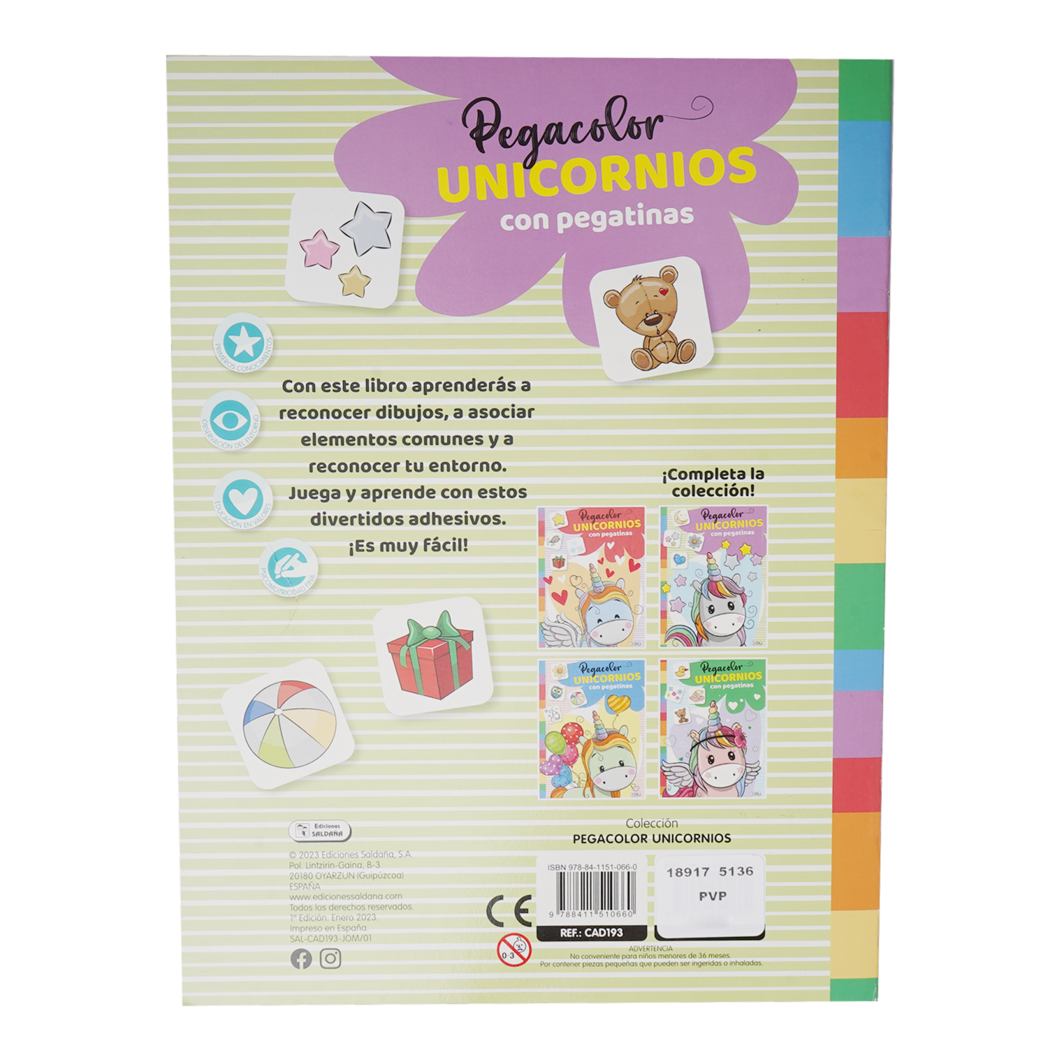 Libro Pegacolor Unicornios Con Pegatinas SALDAÑA 16 Páginas – SALDAÑA. Disponible en nuestros locales. Precio y stock pueden variar según la tienda.