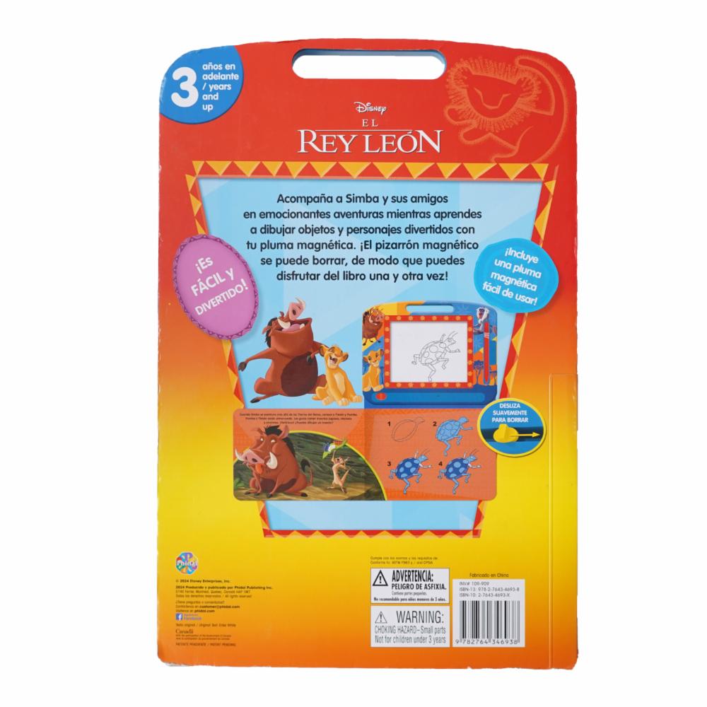 Acompaña a Simba y sus amigos en emocionantes aventuras mientras aprendes a dibujar objetos y personajes divertidos con tu pluma magnética. ¡El pizarrón magnético se puede borrar, de modo que puedes disfrutar del libro una y otra vez!
