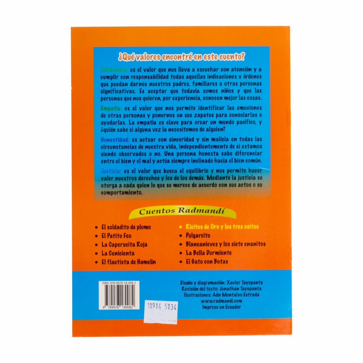 Libro Ricitos De Oro Y Los Tres Ositos A5 RADMANDÍ 11 Páginas – RADMANDI. Disponible en nuestros locales. Precio y stock pueden variar según la tienda.