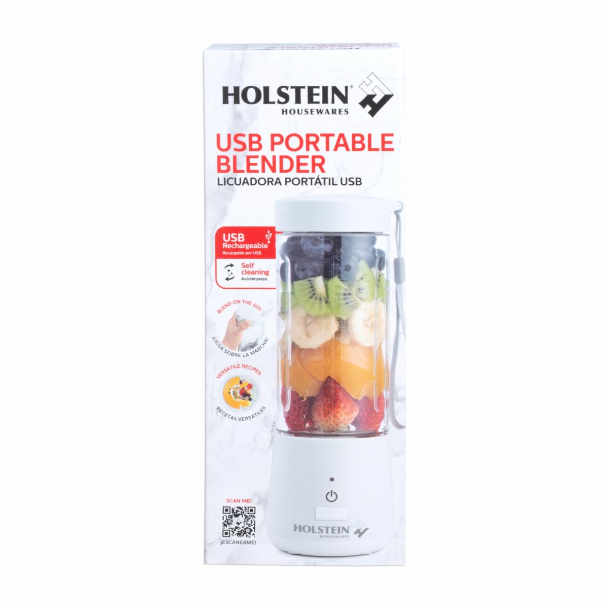 - La licuadora portátil USB de Holstein Housewares es la solución perfecta para tus necesidades de licuado en movimiento. Está diseñada para adaptarse a estilos de vida activos y dinámicos, es el accesorio ideal para preparar tus batidos y licuados en cualquier lugar, ya sea en el trabajo, gimnasio o viajes. ¡Llena tu día de energía saludable!