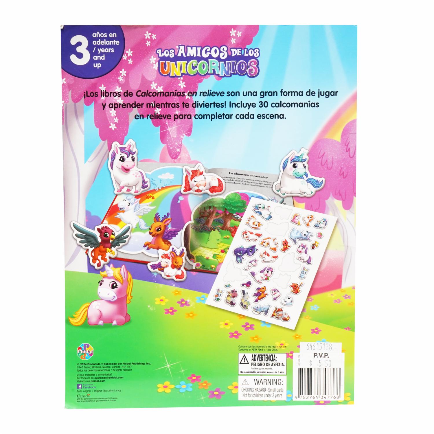 Libro Los Amigos De Los Unicornios Calcomanías En Relieve MR.BOOKS 12 Páginas