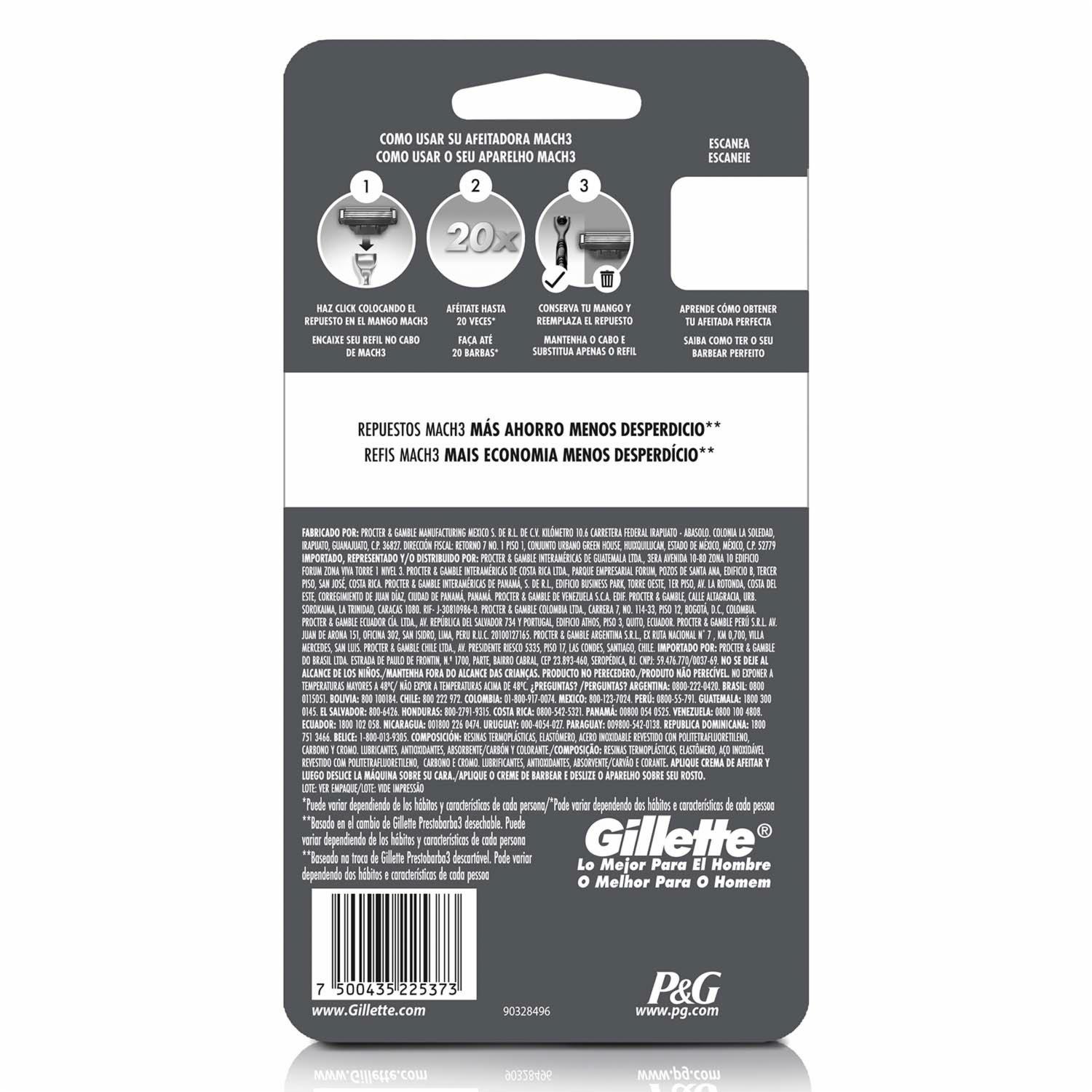 - El mango metalizado de la máquina de afeitar gillette mach 3 carbono tiene un diseño ergonómico para un mayor control y ademas es compatible con todos los cartuchos de la familia mach3 para mejorar la experiencia