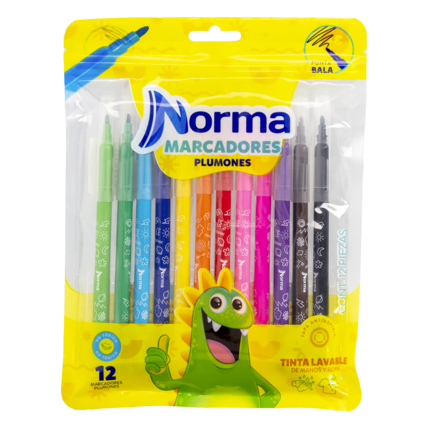 Marcadores Plumones Tinta Lavable NORMA X 12 Piezas