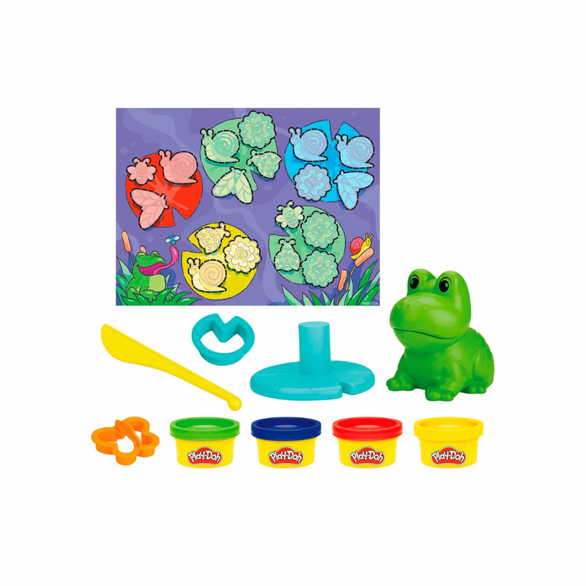 - El set Primeras creaciones con la rana y los colores permite realizar actividades creativas a niños a partir de 3 años. Pueden hacerle crecer una graciosa lengua a la rana de juguete y crear insectos de masa con los moldes de la parte inferior del juguete. Además, pueden crear nenúfares y mariposas con los cortadores y los 4 colores de masa Play-Doh que vienen en latas de 28 gramos. ¡Disfruta de la creatividad y la diversión en Juguetón, donde la imaginación y el juego se unen!