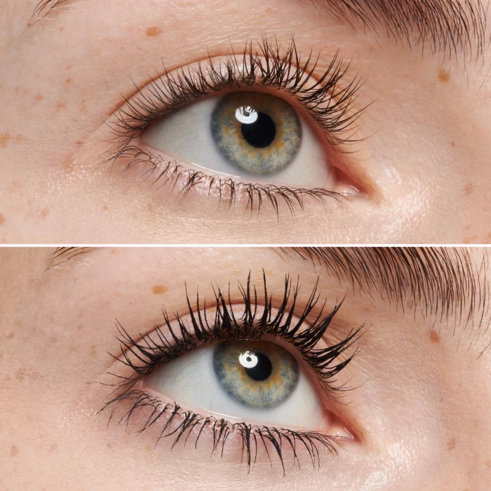 La máscara MAX IT Volume & Length proporciona el máximo volumen y una longitud extraordinaria gracias a una innovadora combinación de gupillón y textura. El gupillón especial tiene cerdas largas y cortas, suaves que llegan a cada pestaña. Al mismo tiempo, la textura Instant Volume está enriquecida con fibras de celulosa que crean un efecto de alargamiento de las pestañas. Además, la fórmula nutre las pestañas con manteca de karité