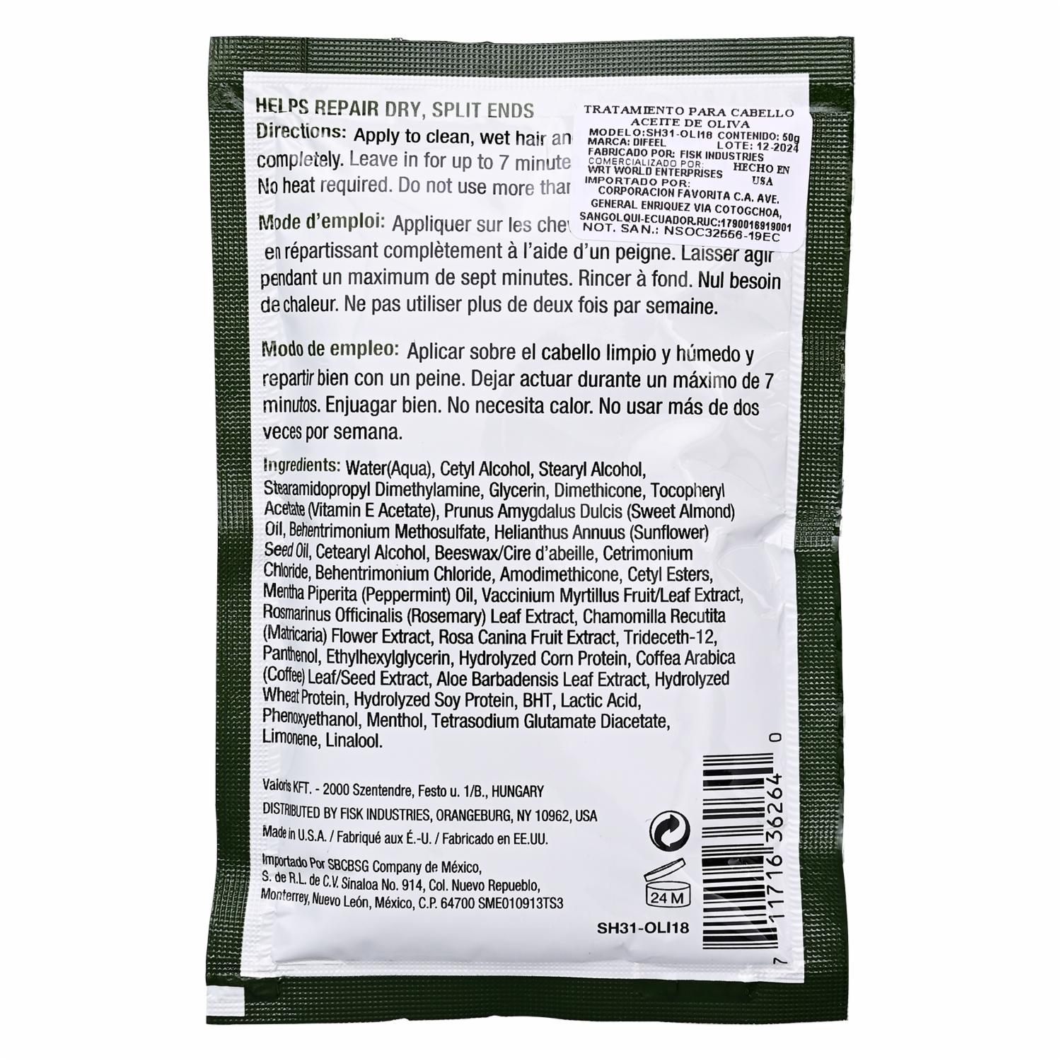 Mascarilla De Cabello Aceite De Oliva DIFEEL 50 Gr