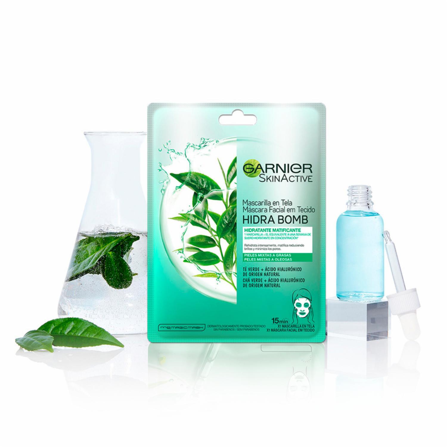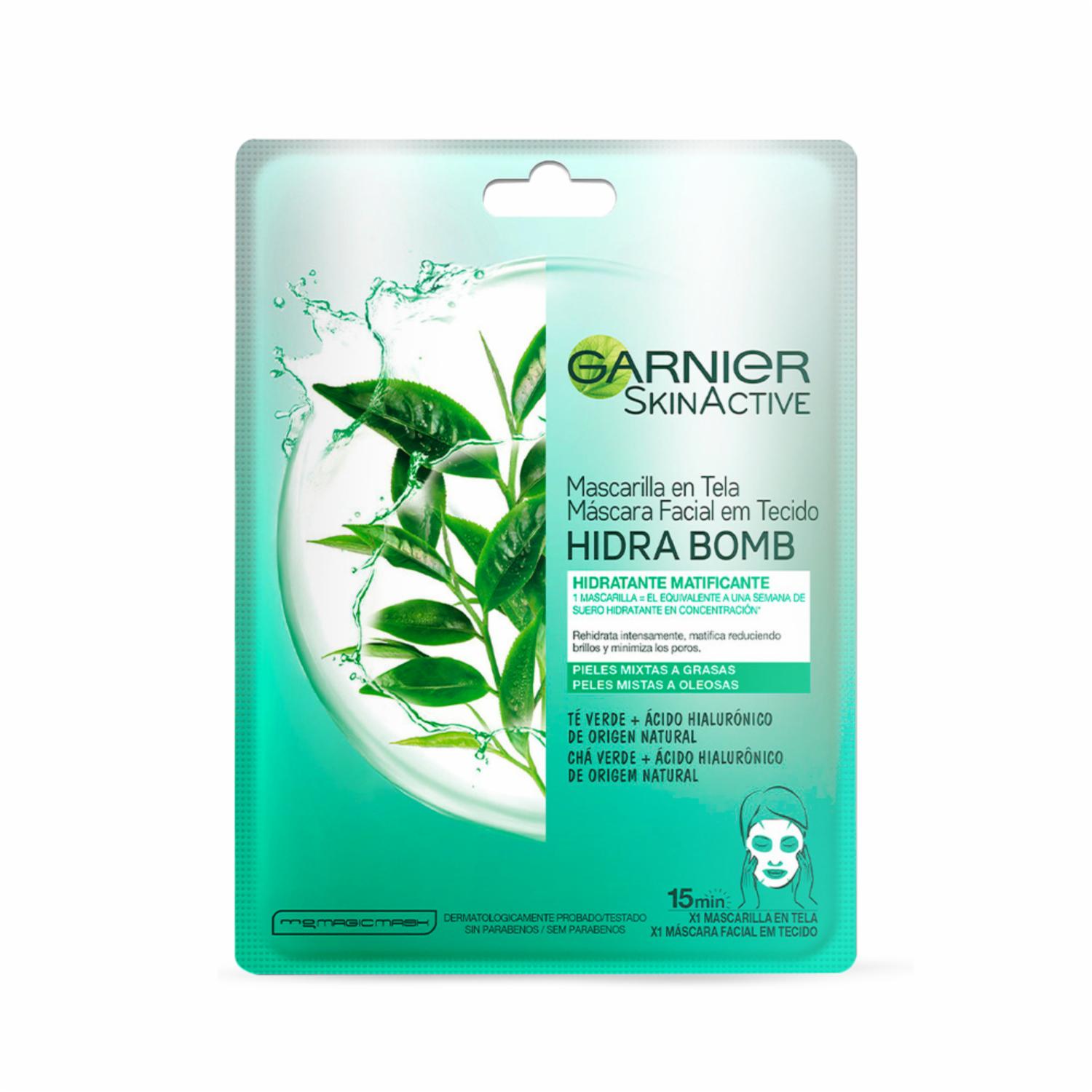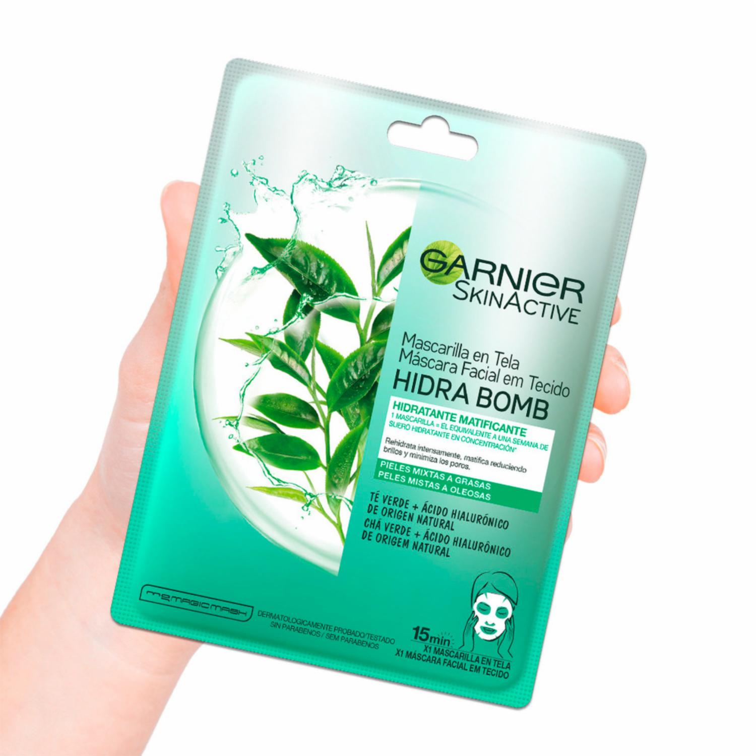 - Conoce la Mascarilla facial en tela matificante hidra bomb Garnier Skin Active. Contiene 1 pieza la cual rehidrata intensamente y te ayuda a reducir el brillo de tu cutis, matificándolo y reduciendo poros.