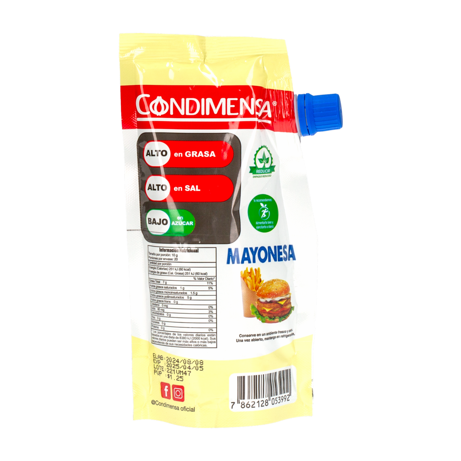 Descubre la Mayonesa Básica CONDIMENSA, un acompañante ideal para realzar el sabor de tus platos. Este práctico envase de 200 g es perfecto para darle un toque cremoso a tus sándwiches, ensaladas y aperitivos, brindándote la calidad que buscas en cada bocado