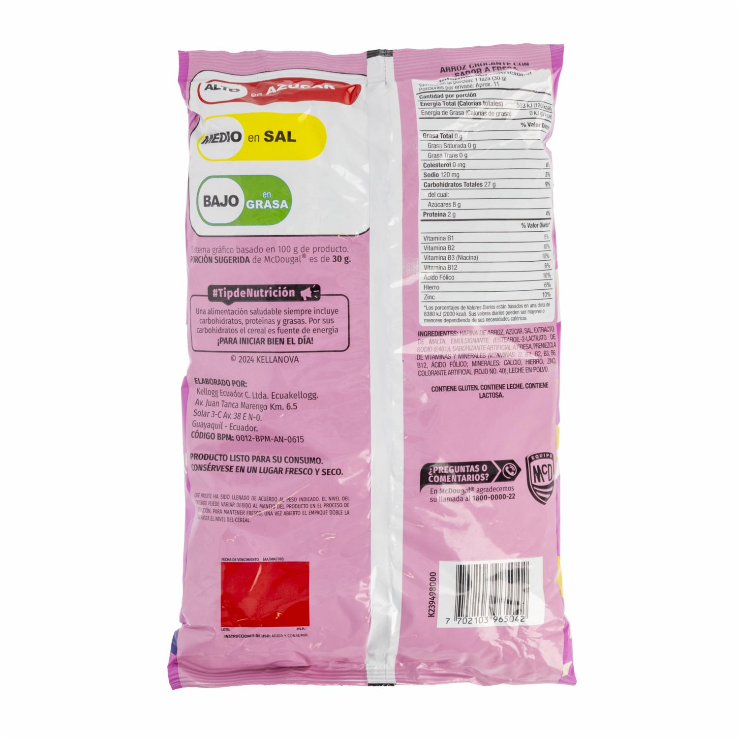 Cereal De Arroz Crocante Sabor A Fresa MC.DOUGAL 320 G