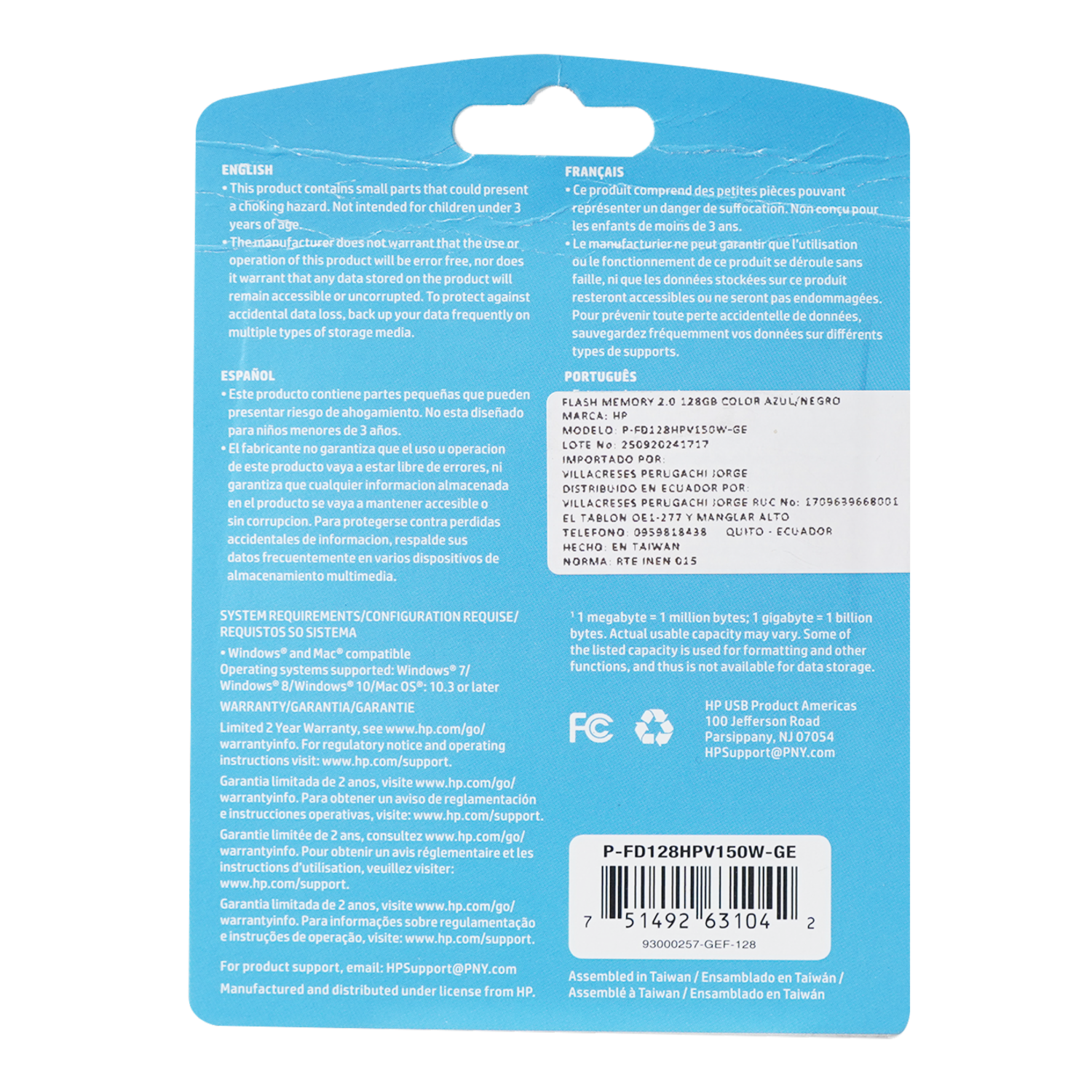 - Unidad flash USB HP de color azul, diseñada para ofrecer almacenamiento portátil y confiable. Con una velocidad de escritura de hasta 40 MB/s y conectividad USB 2.0, es compatible con plataformas PC y Mac. Su diseño compacto, con un ancho de 4 pulgadas, la hace ideal para llevar datos de manera práctica y segura. Fabricada por HP, garantiza calidad y rendimiento en el respaldo y transferencia de archivos