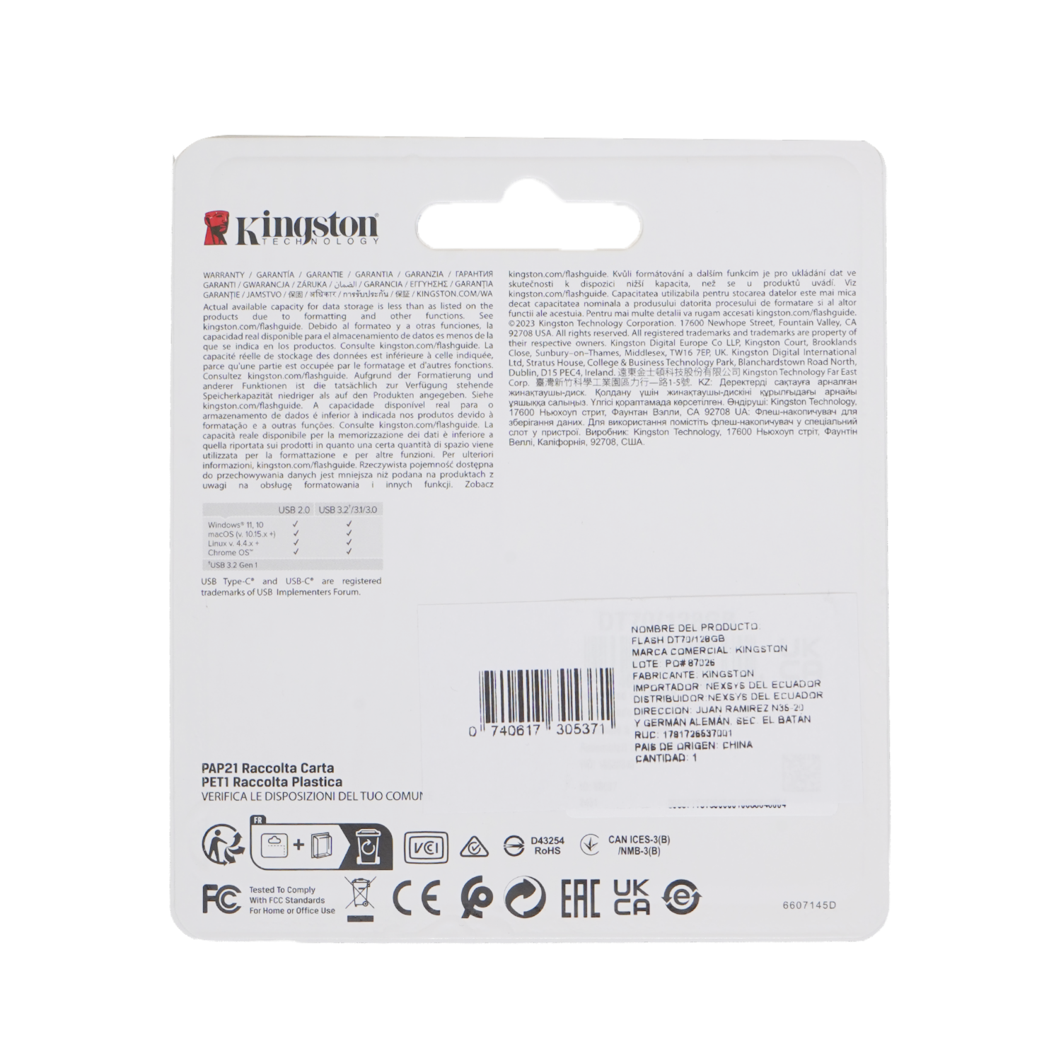 • La Kingston DataTraveler Exodia M de 128GB es una solución de almacenamiento portátil y eficiente, ideal para transferir y guardar documentos, música, videos y más
