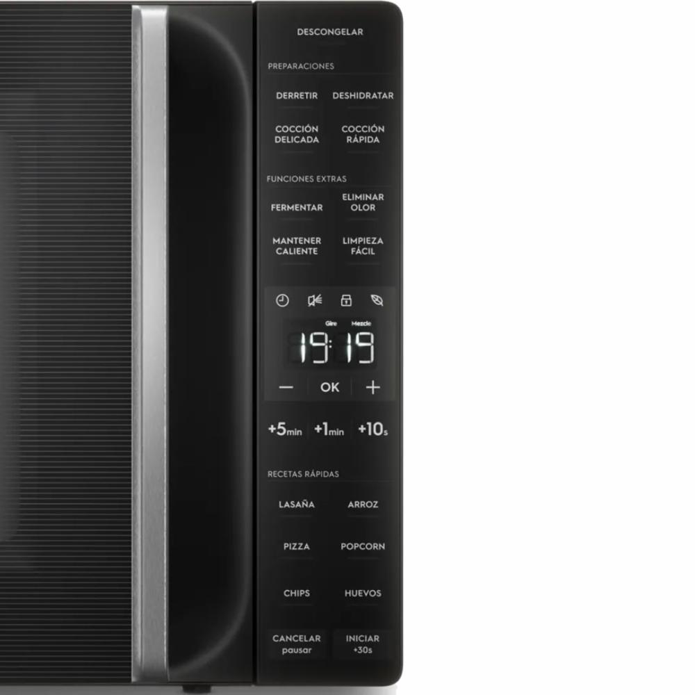 • Características: -Función de descongelación asistida, que indica el momento adecuado para girar o mezclar los alimentos y obtener un resultado uniforme. -Panel intuitivo, que ofrece ajustes automáticos de potencia para mayor facilidad en su uso. -4 preparaciones preestablecidas, que permiten una cocción rápida y precisa de diversos alimentos