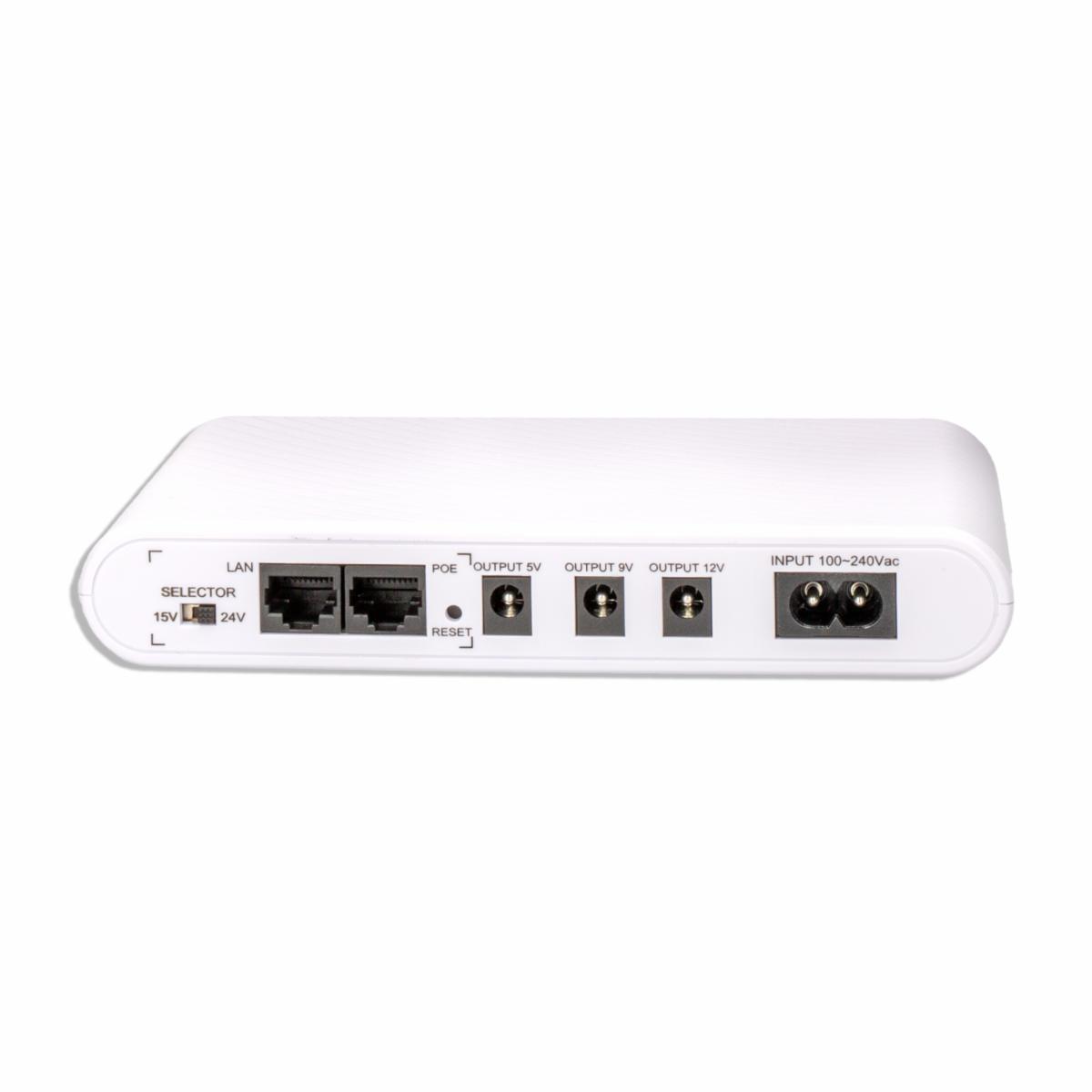 - - Diseño compacto y eficiente que proporciona de 5 a 6 horas de energía de respaldo para routers - Tensión nominal de trabajo: 100~240Vac/50-60Hz - Potencia de salida (Máx.): 17W - Salida: USB/DC 1/ DC2/ DC3/ Interfaz POE - Voltaje de salida (seleccionable): 5Vdc /9Vdc/ 12Vdc/ 15Vdc/24Vdc - Capacidad de la batería: 10000 mAh