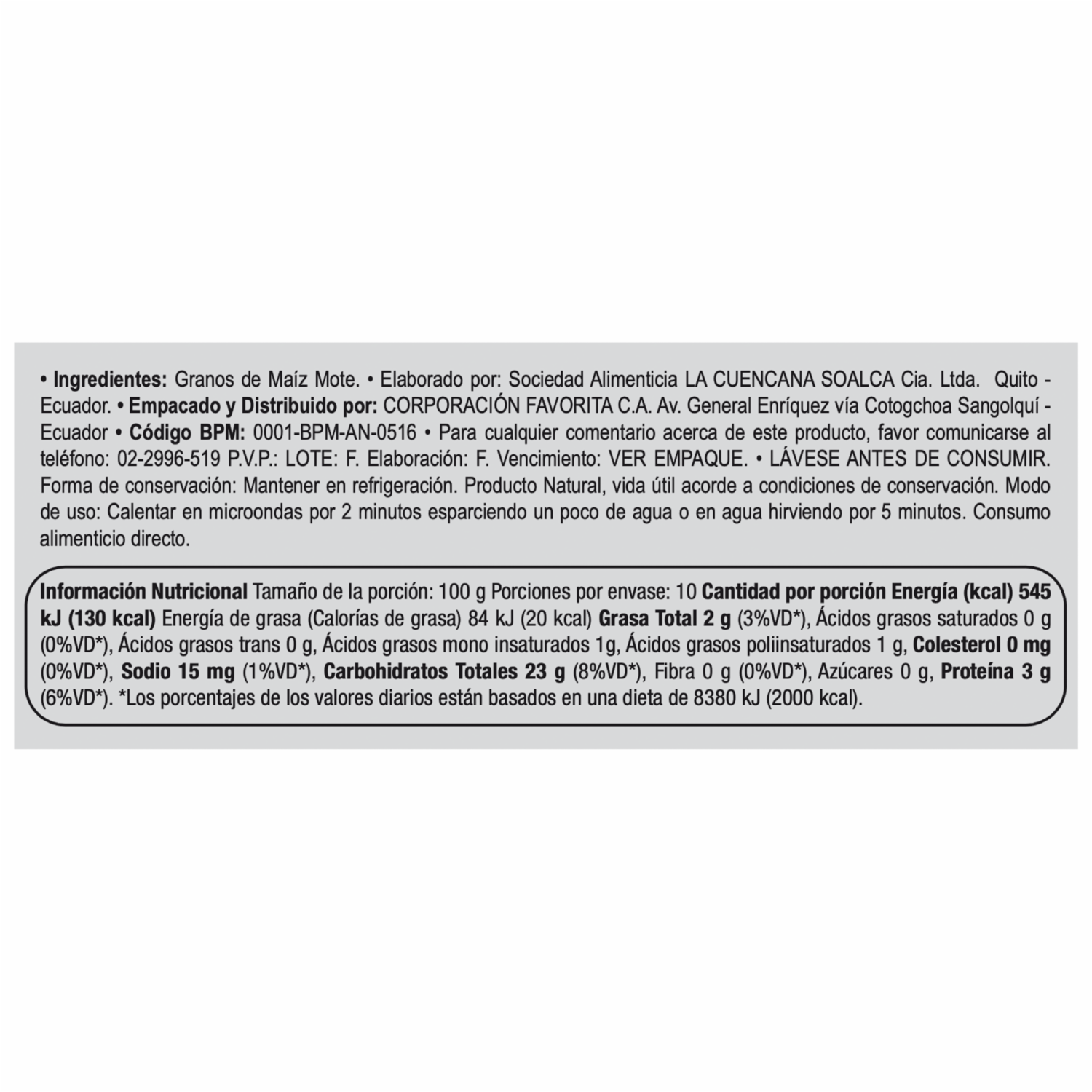- Mote cocinado sin sal