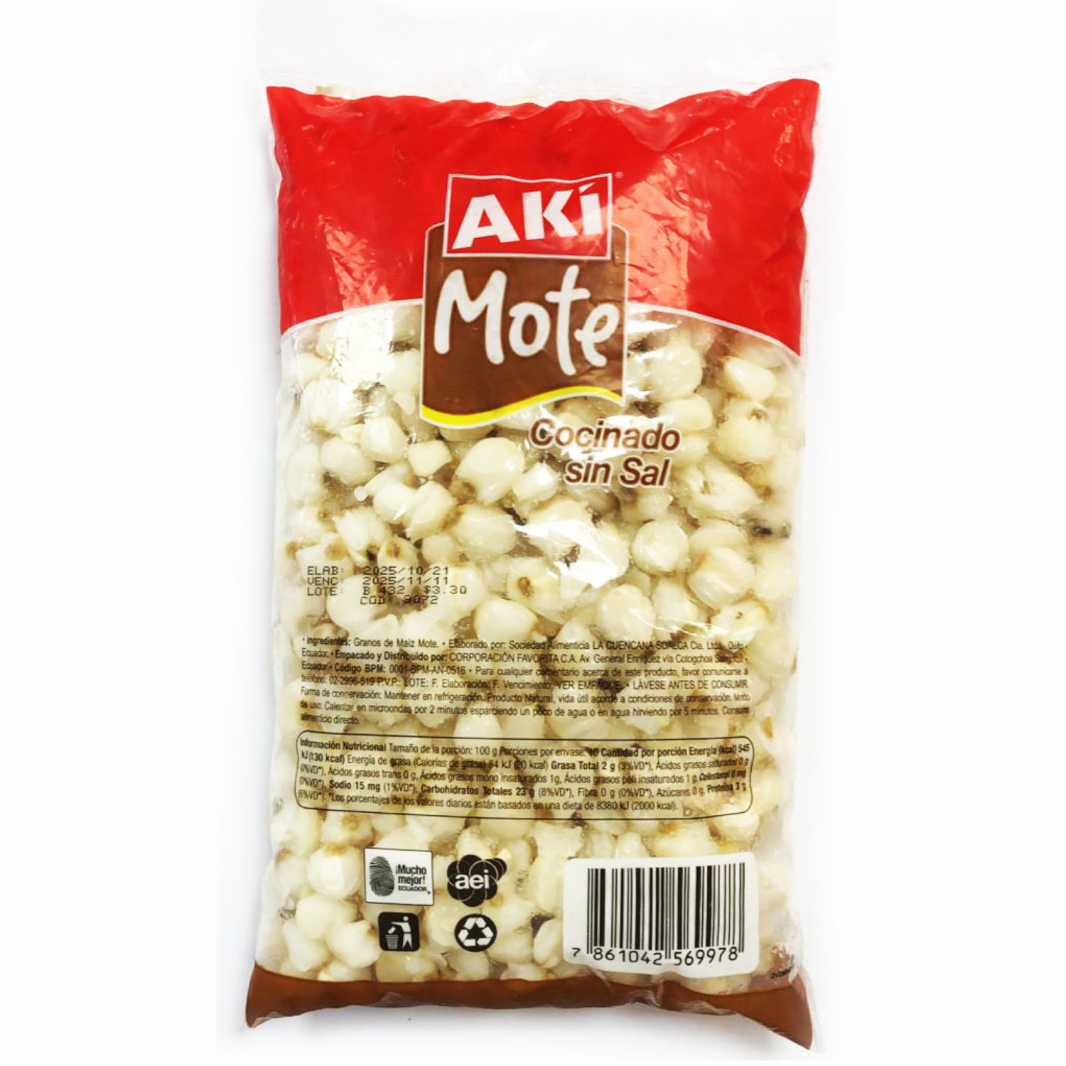 Mote Cocinado Sin Sal AKÍ 1000 G
