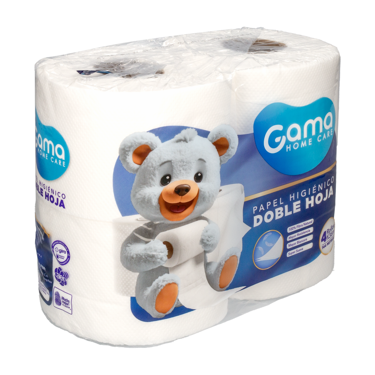 - Papel Higiénico doble hoja 100% fibra natural, mayor resistencia, mayor blancura y super suave