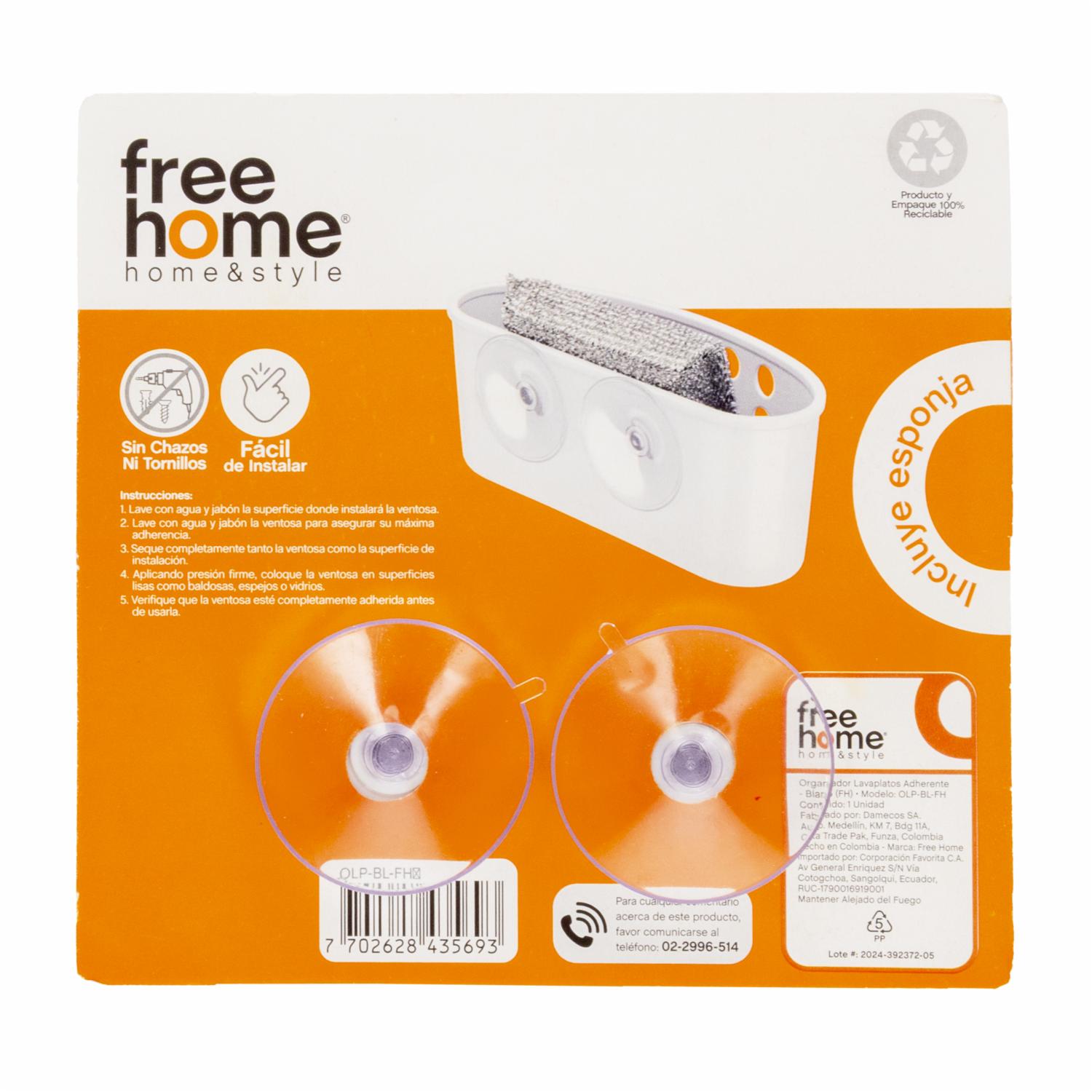 • El organizador para lavaplatos adherente Free Home es una solución práctica para mantener tu área de lavado ordenada y eficiente