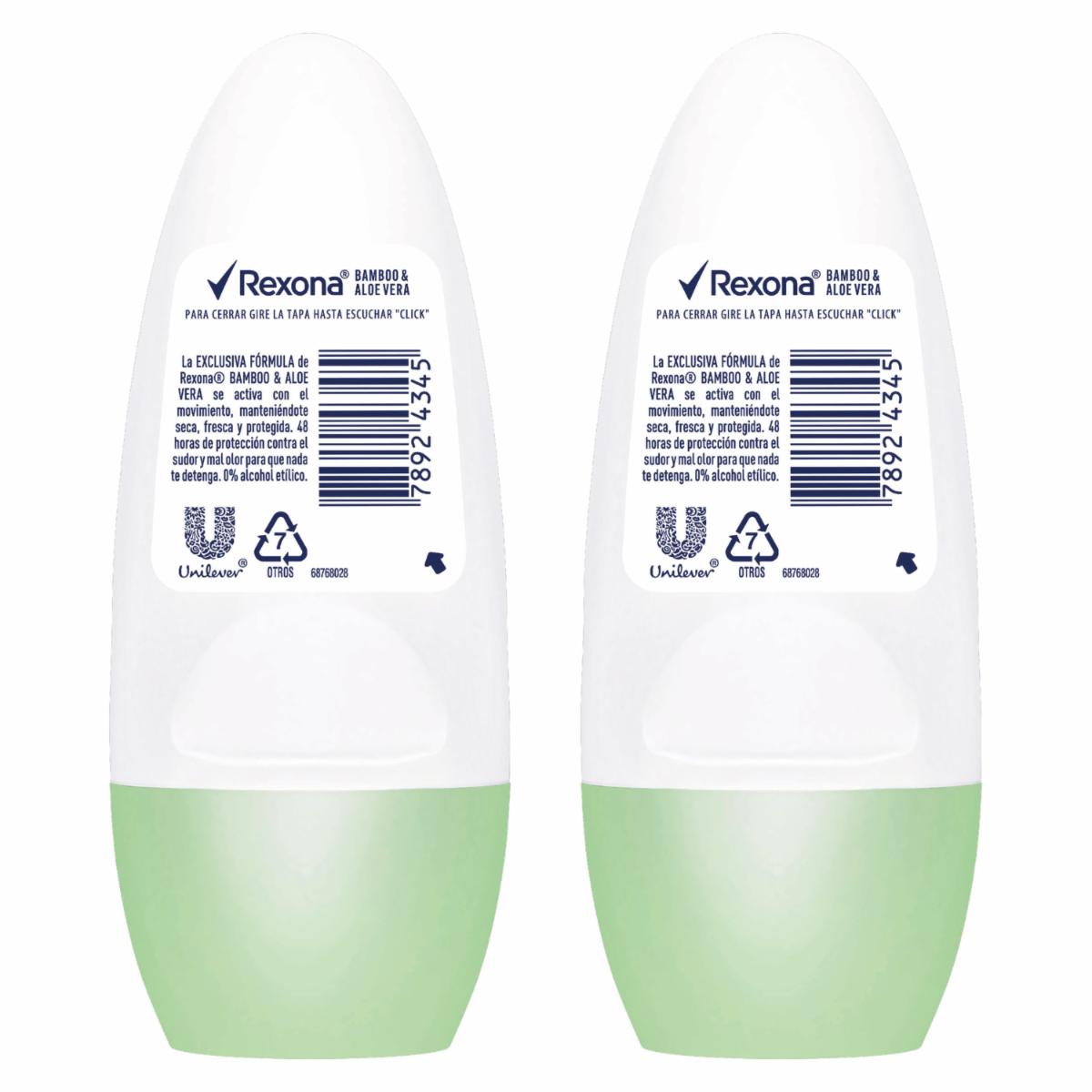 - Experimenta la frescura natural con el Desodorante Roll-On Bamboo y Aloe Vera de Rexona en su envase de 53g