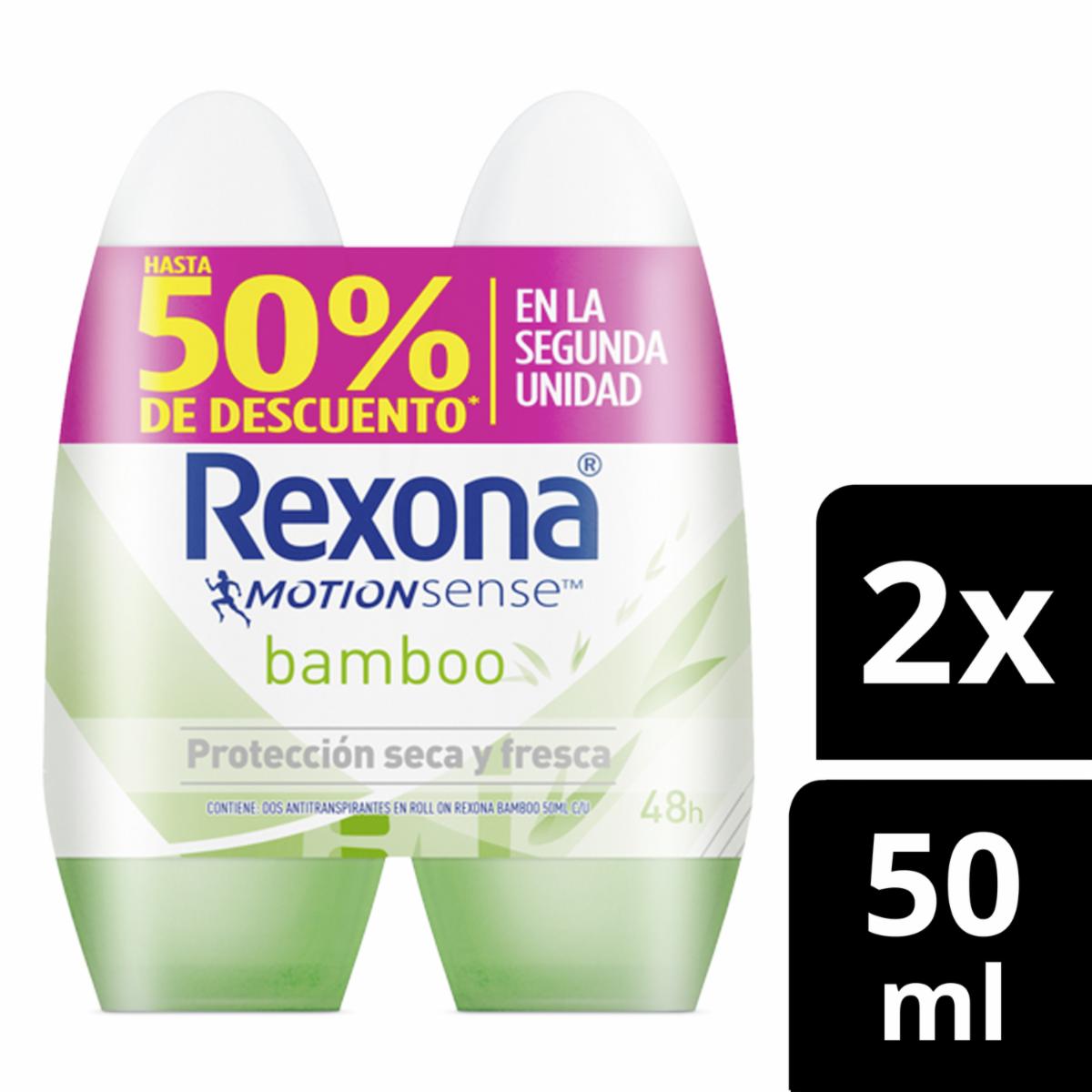 Desodorante En Roll On Para Dama Bamboo Y Aloe Vera REXONA 2 X 50 Ml