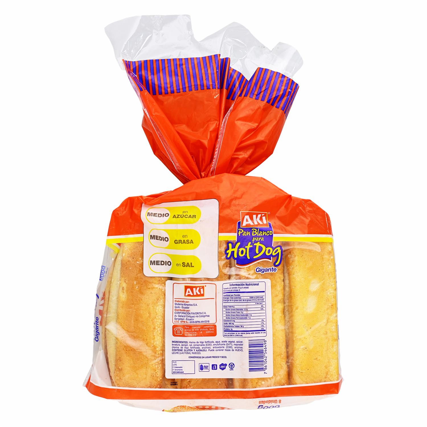 - ¡Ahorra más y vives mejor! Pan Hot Dog Gigante AKI 600g
