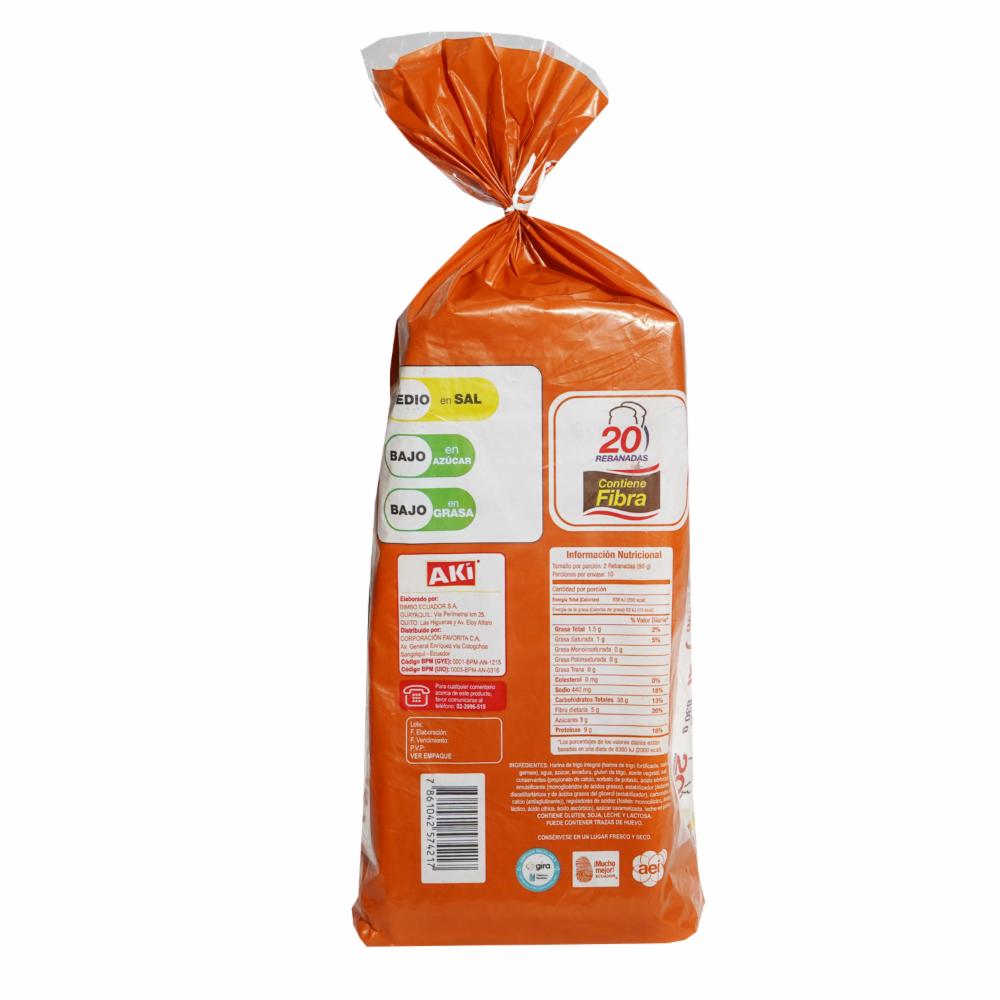 ¡Ahorra más y vives mejor! Pan Integral Sanduchero AKI 830 g