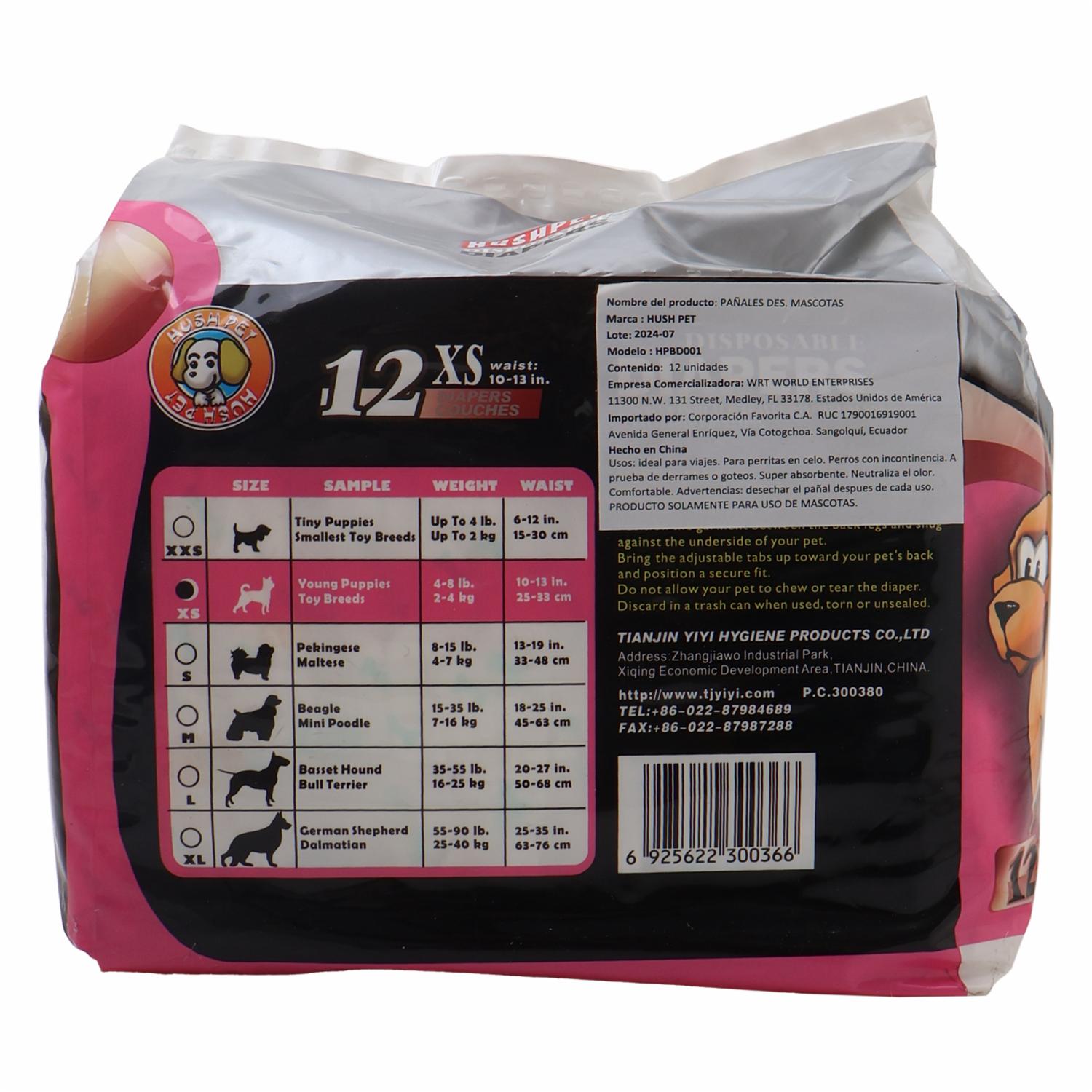 Pañal De Mascotas Básico HUSHPET X 12 Uds