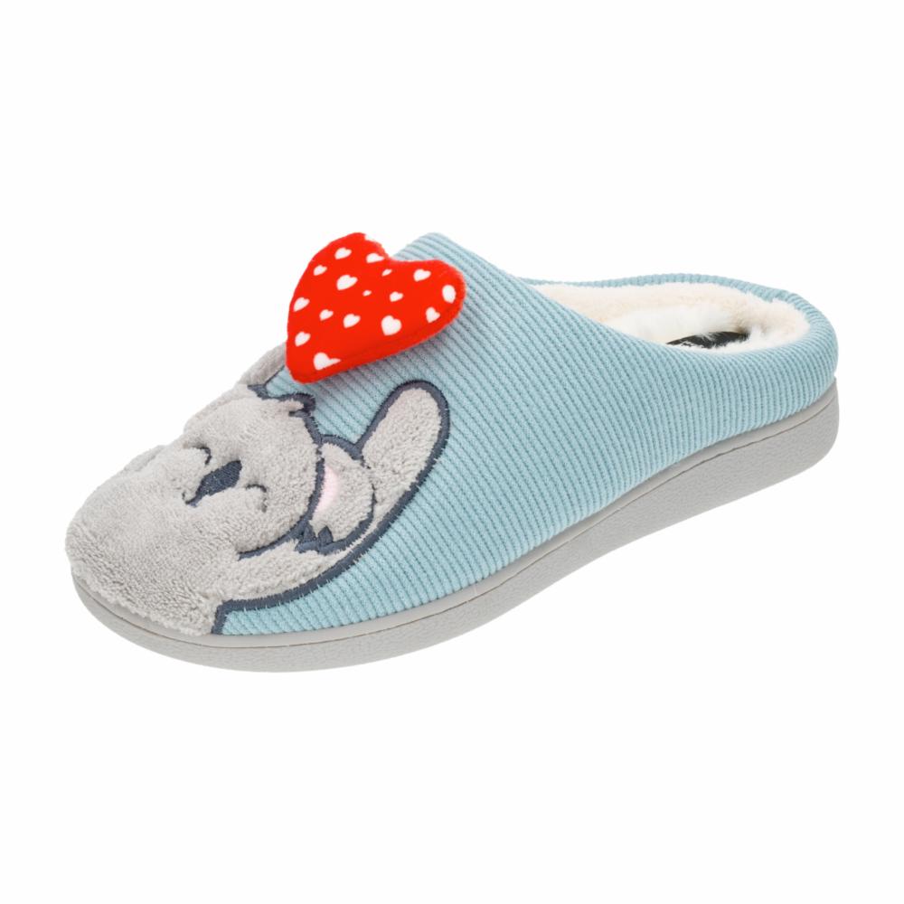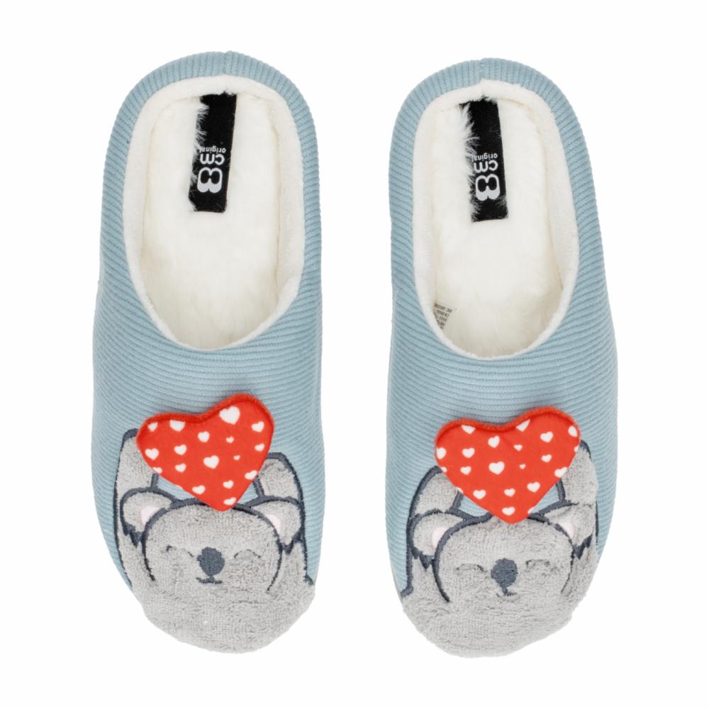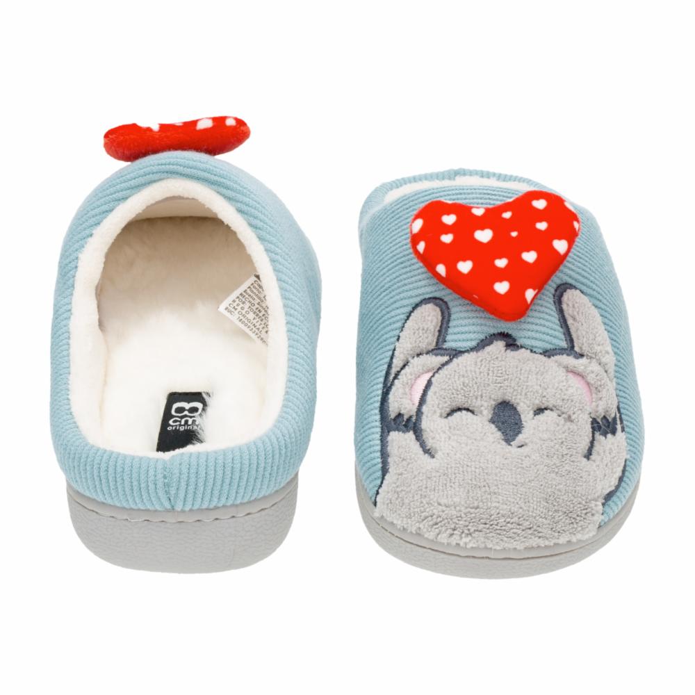 Pantufla para dama celeste, bordado de Koala con corazón, planta confortable, suela antideslizante