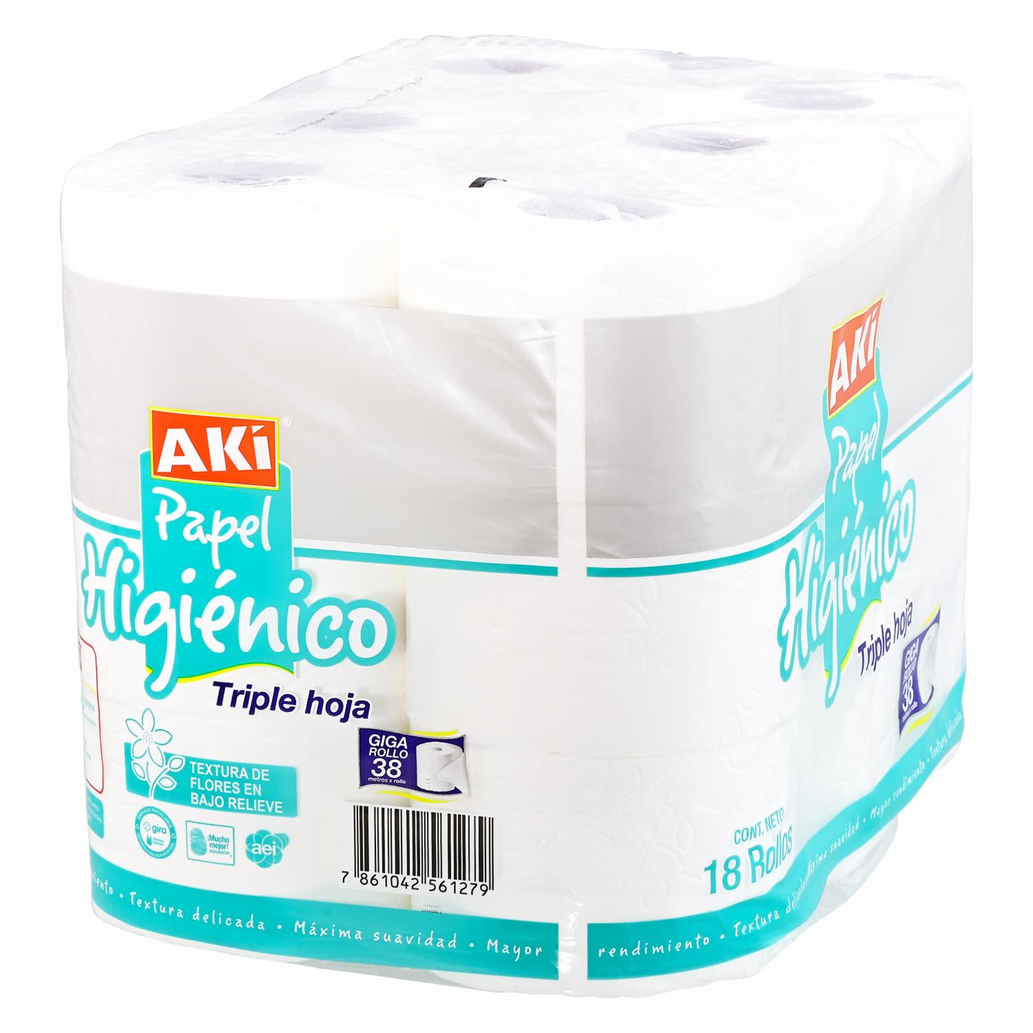 Papel Higiénico Premium Triple Hoja AKÍ 18 Rollos