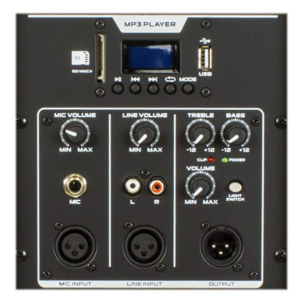 • Características - Potencia 120?W RMS / 80000?W PMPO - Parlante de 15" de dos vías - Conectividad Bluetooth y TWS,- Entrada para tarjeta SD y radio FM - Sincronización con segundo parlante