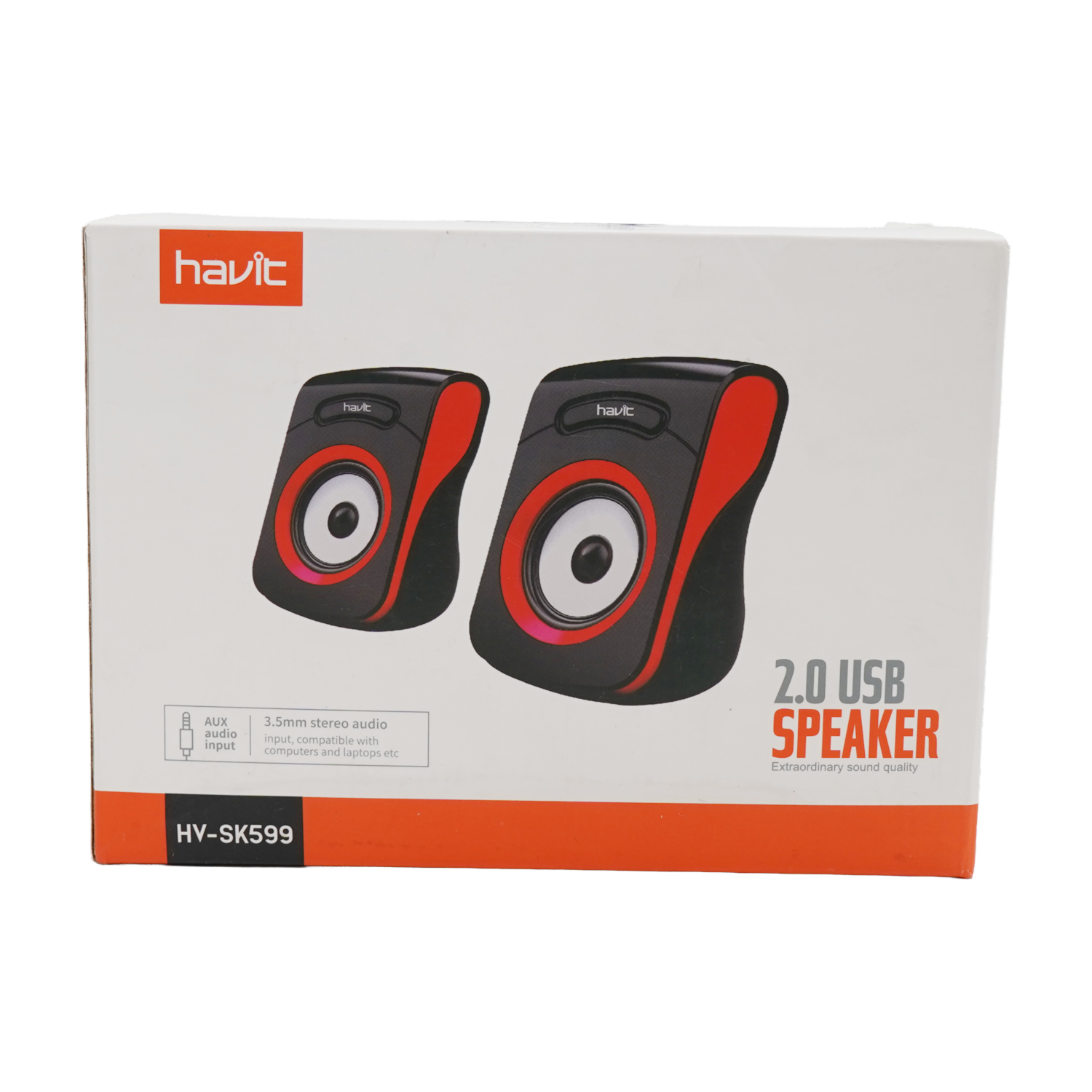 - Parlante HV-SK599 Conectividad: 3,5mm Conector: cable USB de 5V Potencia: 3W x 2 Longitud del cable: 1,2 metros