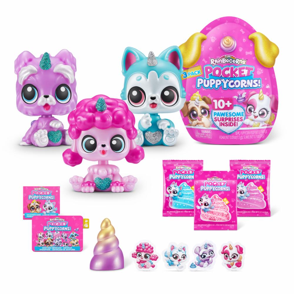 ¡Los Pocket Puppycorns son la última incorporación a tu colección de mascotas! Estos amigos con cabeza bobble están destinados a ser tu próximo mejor amigo. Hay 10 sorpresas increíbles en el interior y 12 cachorros para coleccionar