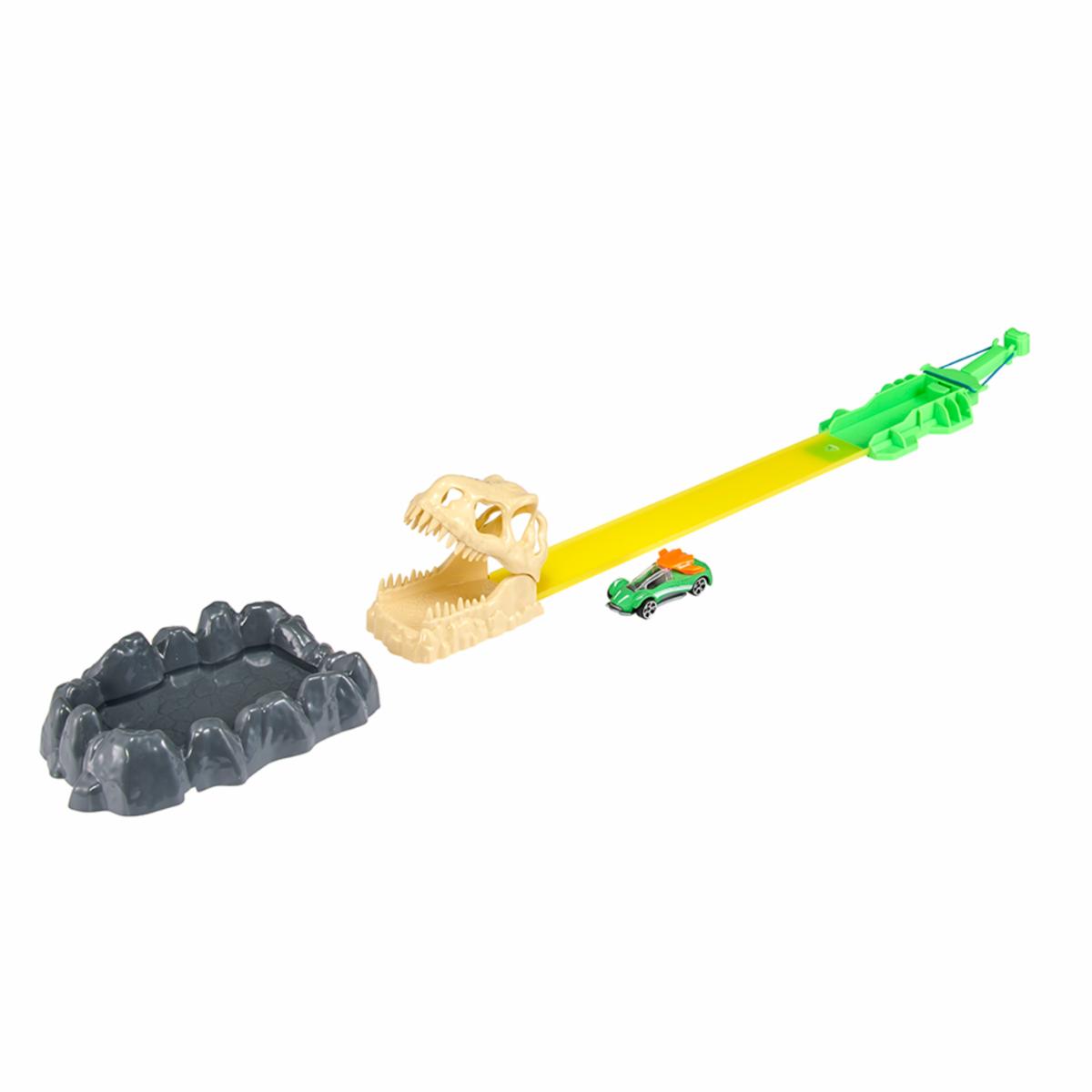 ¡Este set de Teamsterz incluye un tirador elástico, una pista de carreras de un solo carril con salto de cabeza de Dino y 1 auto de juguete! El regalo perfecto para cualquier pequeño corredor entusiasta. Genial para jugar en equipo. Es duradero y está fabricado con plástico de alta calidad que no contiene sustancias nocivas para la salud