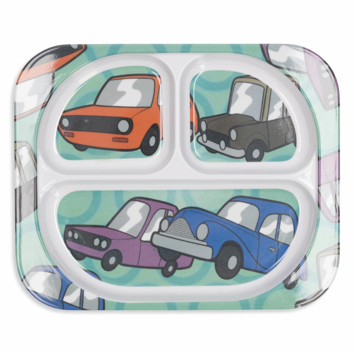 Plato Infantil Rectangular Con Divisiones Diseño Carros VAJILLAS SABANA 24 Cm