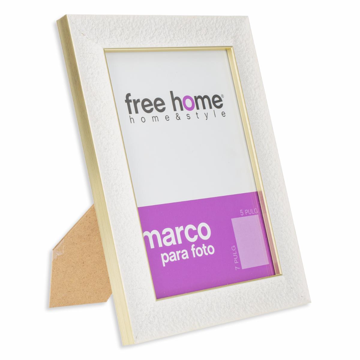 Portarretrato Blanco Orilla Dorada FREE HOME 5X7″