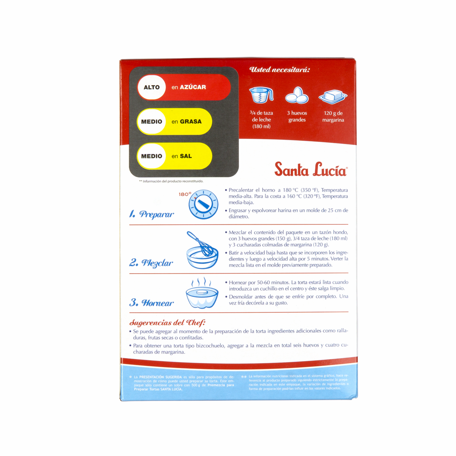 Disfruta de la comodidad de preparar una deliciosa torta con la Premezcla para Torta Sabor a Vainilla de SANTA LUCÍA en su presentación de 500 g. Esta premezcla facilita la elaboración de tortas con un delicioso sabor a vainilla, perfecta para ocasiones especiales o simplemente para disfrutar en cualquier momento