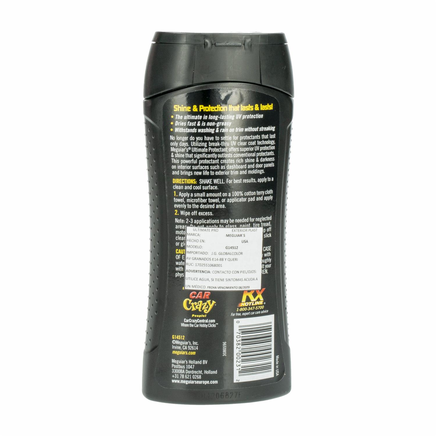 - El Protector de Carrocería Interior y Exterior MEGUIAR'S (355 ml) es un producto de alta calidad diseñado para restaurar y proteger las superficies plásticas del automóvil