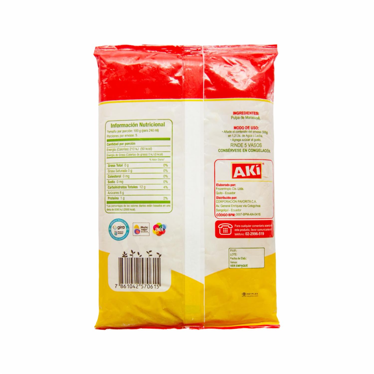 Pulpa De Maracuyá AKÍ 500 G