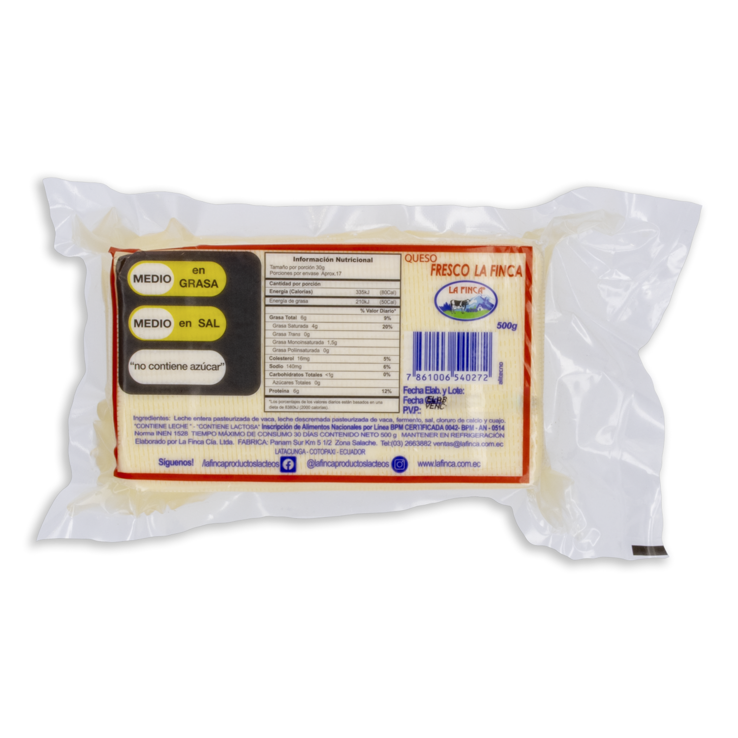 Queso Fresco LA FINCA 500 G – LA FINCA. Disponible en nuestros locales. Precio y stock pueden variar según la tienda.