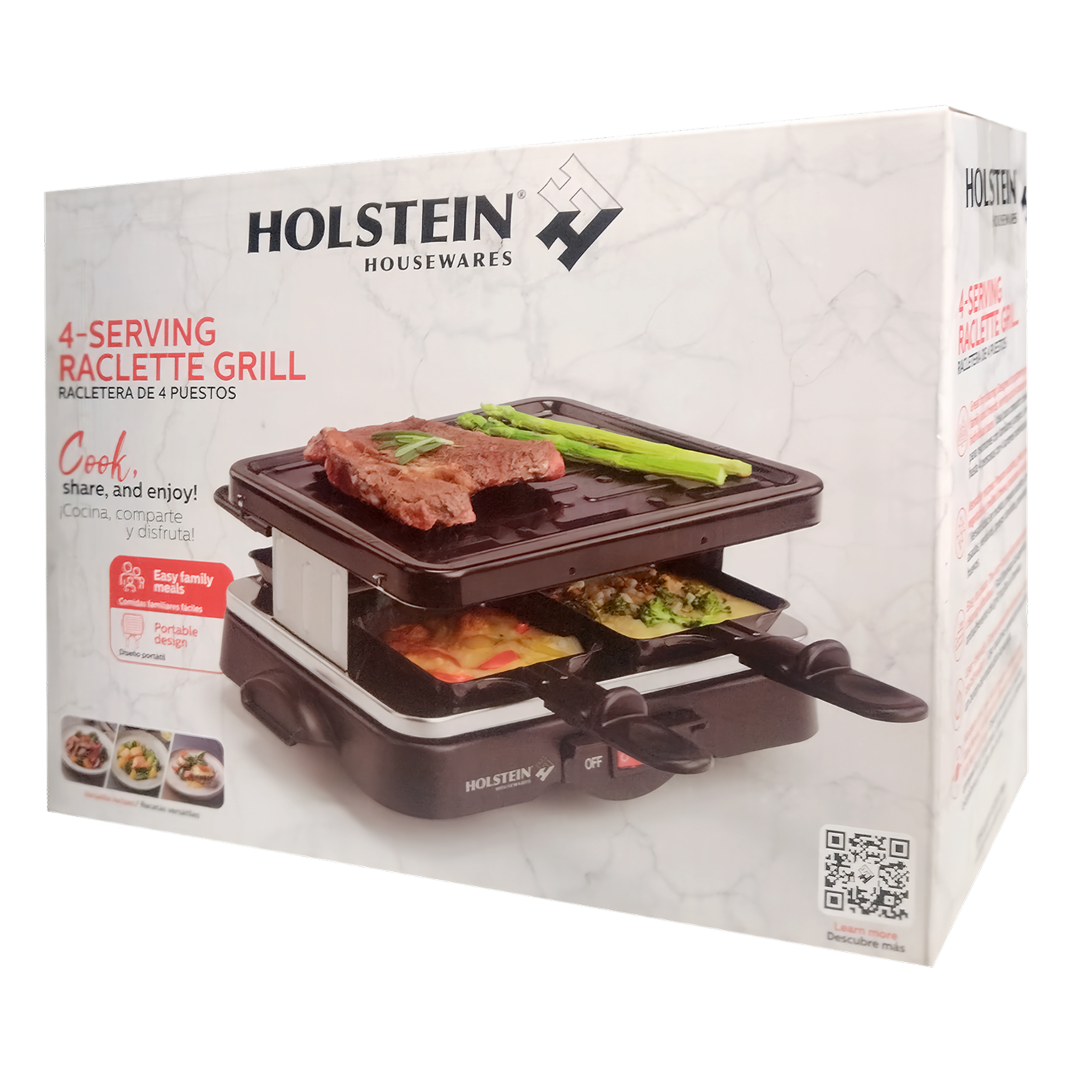 - Es una parrilla eléctrica perfecta para disfrutar raclette. Cuenta con una superficie antiadherente y 4 sartenes individuales, permitiendo que cada comensal prepare sus alimentos a su gusto. Fácil de usar y limpiar, es ideal para reuniones informales y momentos compartidos.