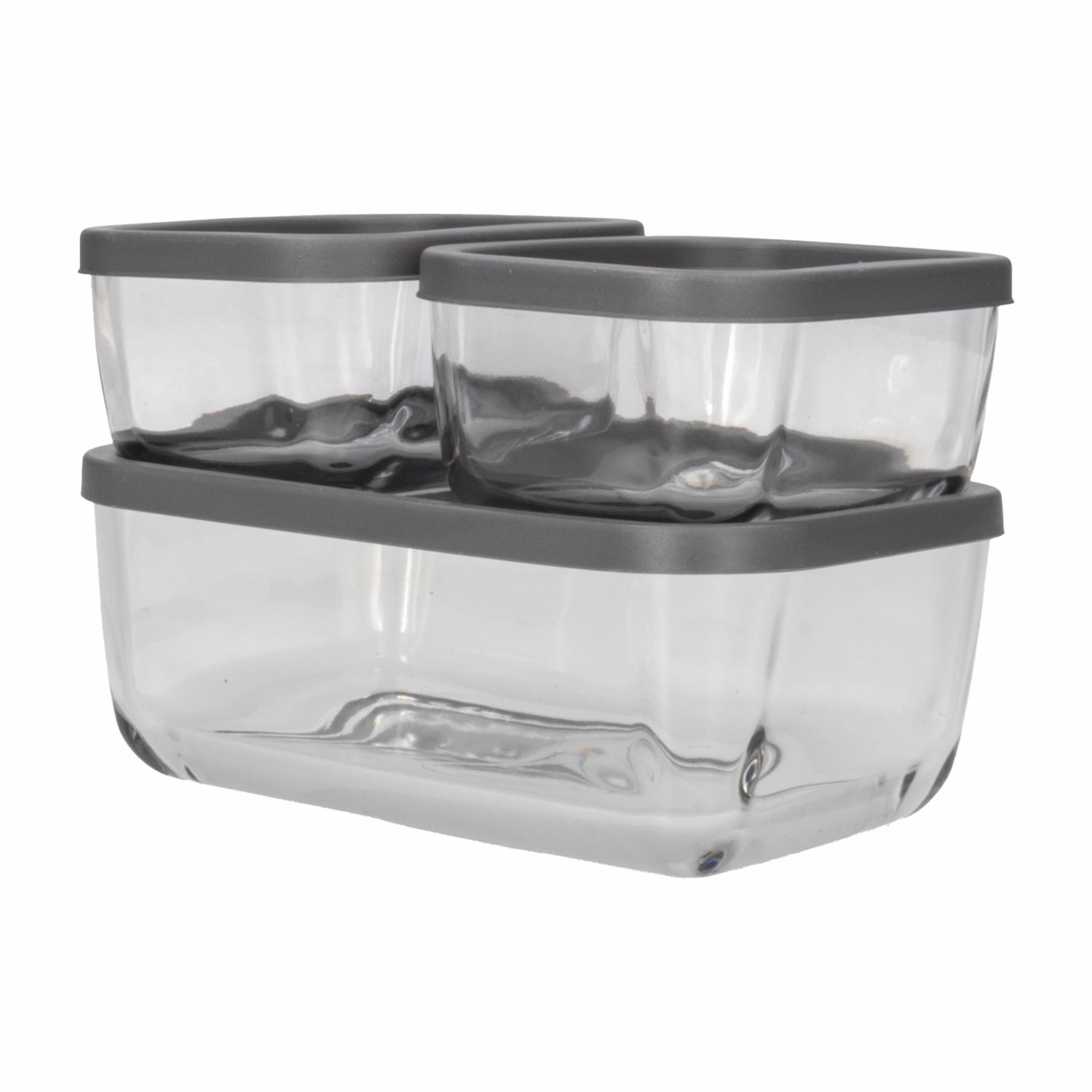 - Características - Vidrio de alta resistencia y durabilidad - Tapas plásticas con clip de cierre hermético y anillo de silicona - Tapas extraíbles que facilitan la limpieza - Aptos para microondas y congelador (sin las tapas) - Diseño apilable para ahorrar espacio Incluye: - 3 Reposteros herméticos