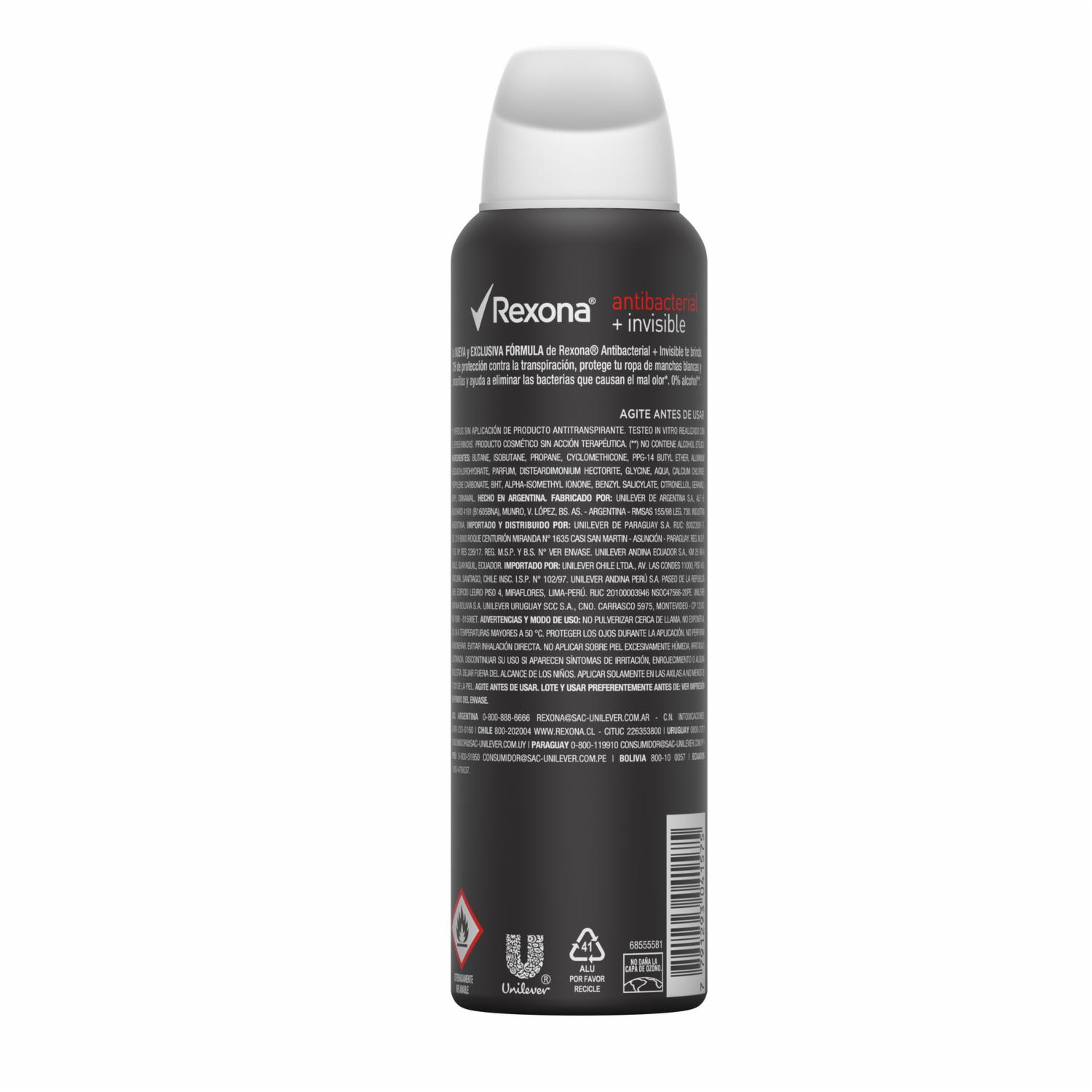 - Experimenta una protección invisible y antibacterial con el Desodorante Spray Spy Women Antibacterial Invisible de Rexona en su envase de 150ml