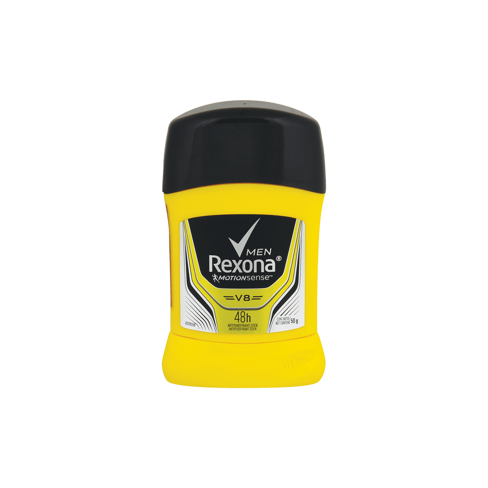- Experimenta una protección potente y antibacterial con el Desodorante Barra V8 Antibacterial de Rexona en su envase de 50g