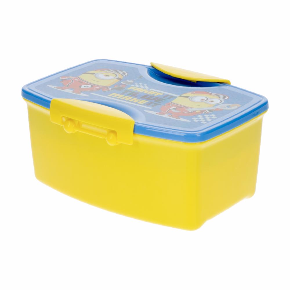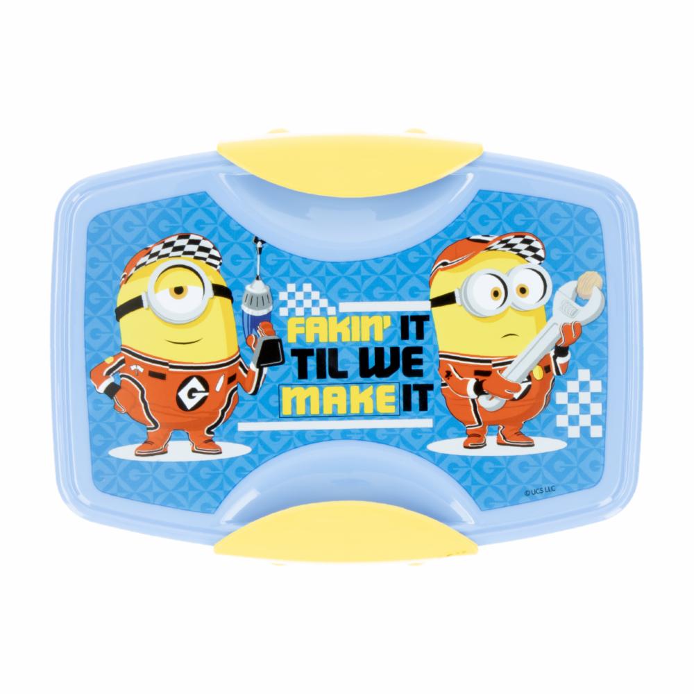 • Sandwichera con cubiertos FUN KIDS diseño Minions 4, práctica y divertida para llevar snacks o almuerzos donde vayan los más pequeños